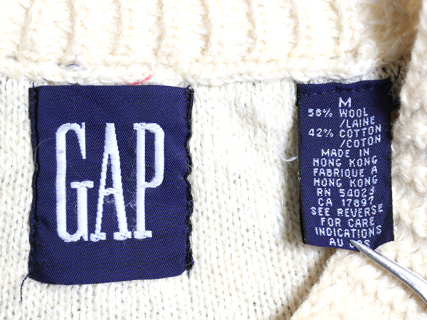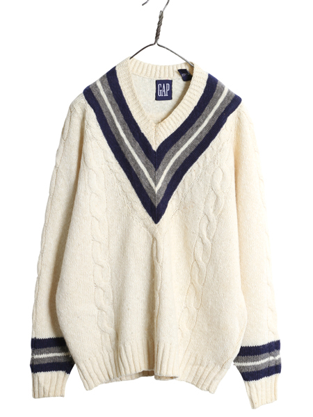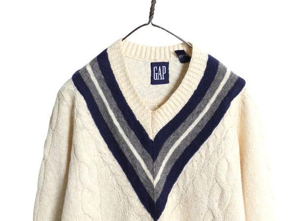 | 商品名 | 90s オールド ギャップ チルデン ケーブル ニット セーター メンズ М 古着 旧タグ Vネック ウール コットン シンプル トップス ナチュラル |