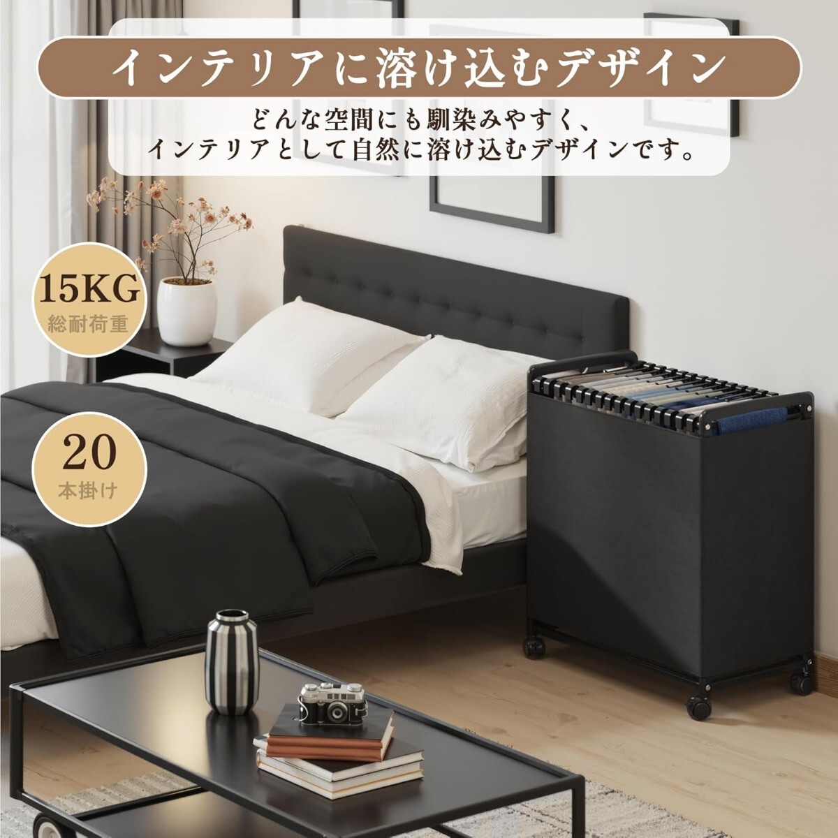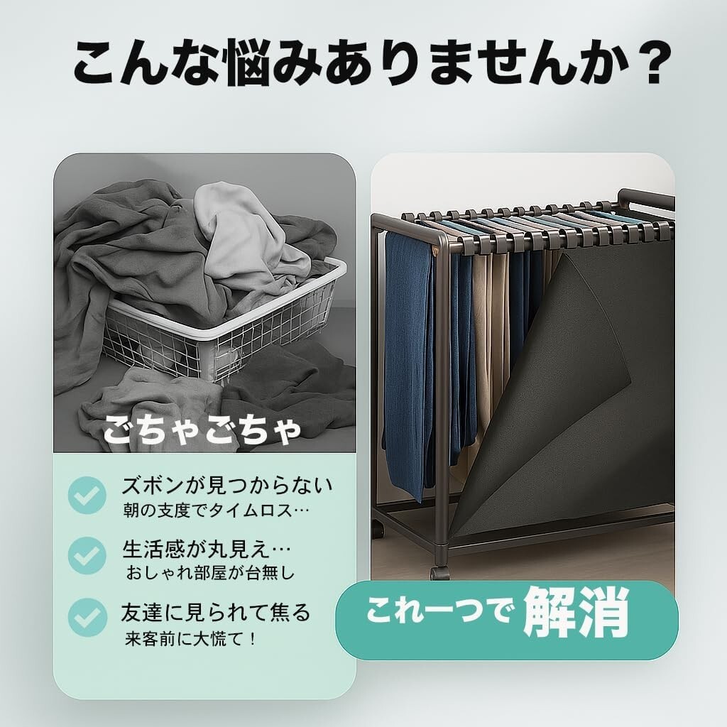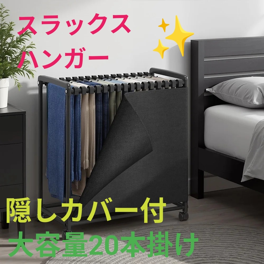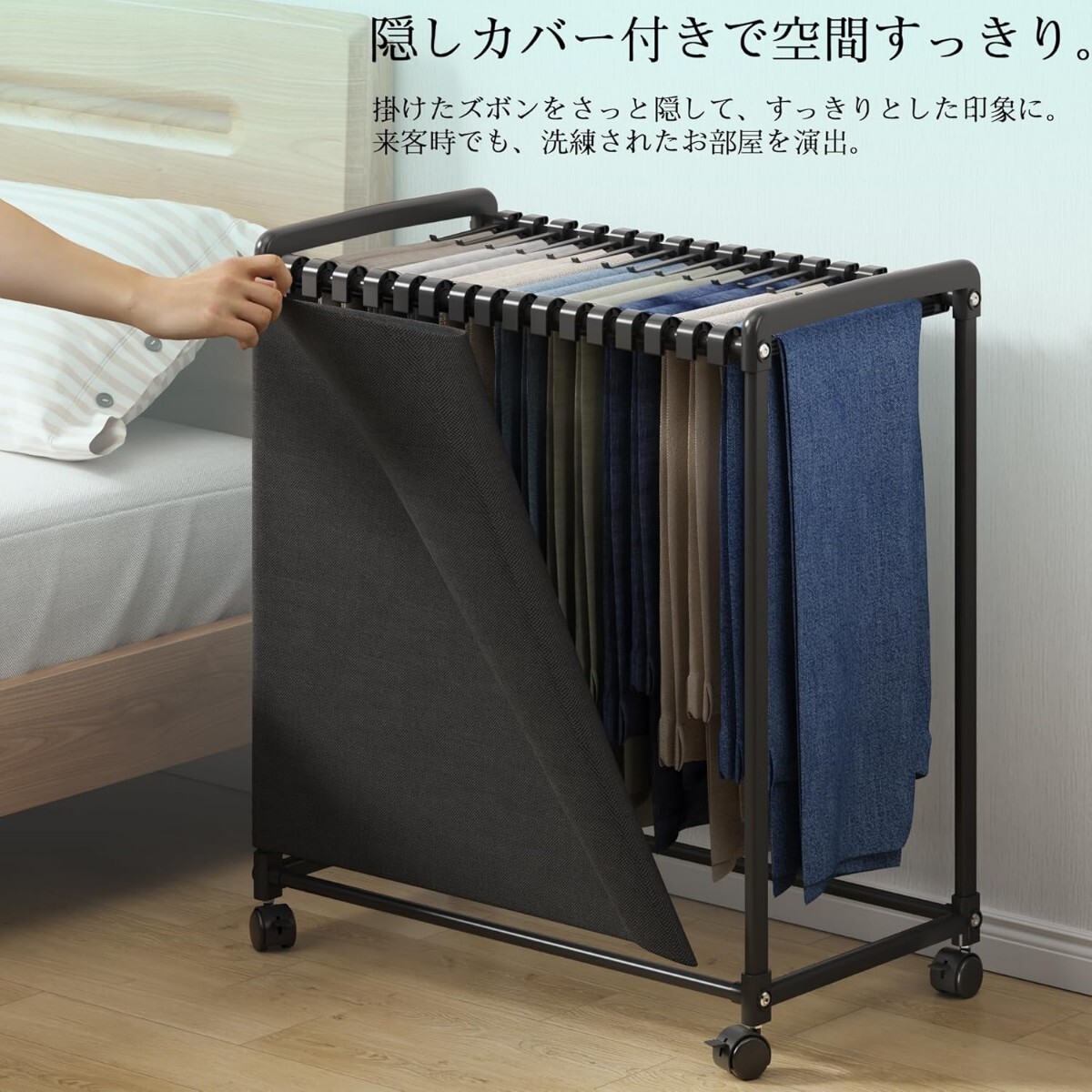#スラックスハンガー隠しカバ一付きズボンラック大容量20本掛けキャスター付きブラック