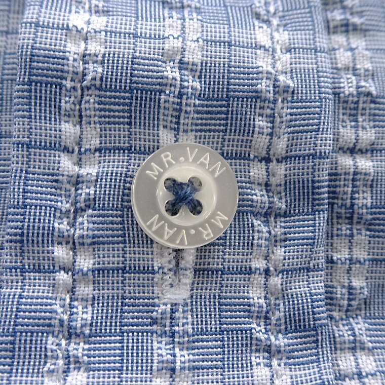 ・胸部分にワンポイントロゴ刺繍の王道デザイン、MR.VANらしいシャツに仕上がっております。 ・汗をかいてもベタつきにくく肌触りがサラっとして涼し気な質感のシアサッカー生地を使用。 ・開襟しても襟立ちが良いボタンダウンカラー、センターボックスプリーツ、左胸ポケットあり、袖先はラウンド型のアジャスタブルカフス仕様です。 |