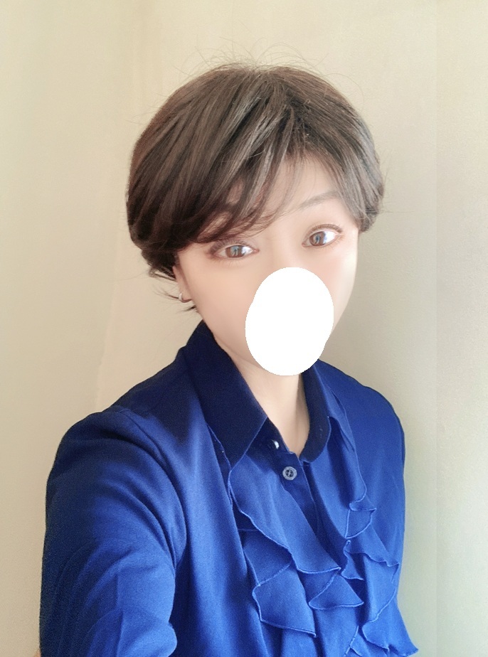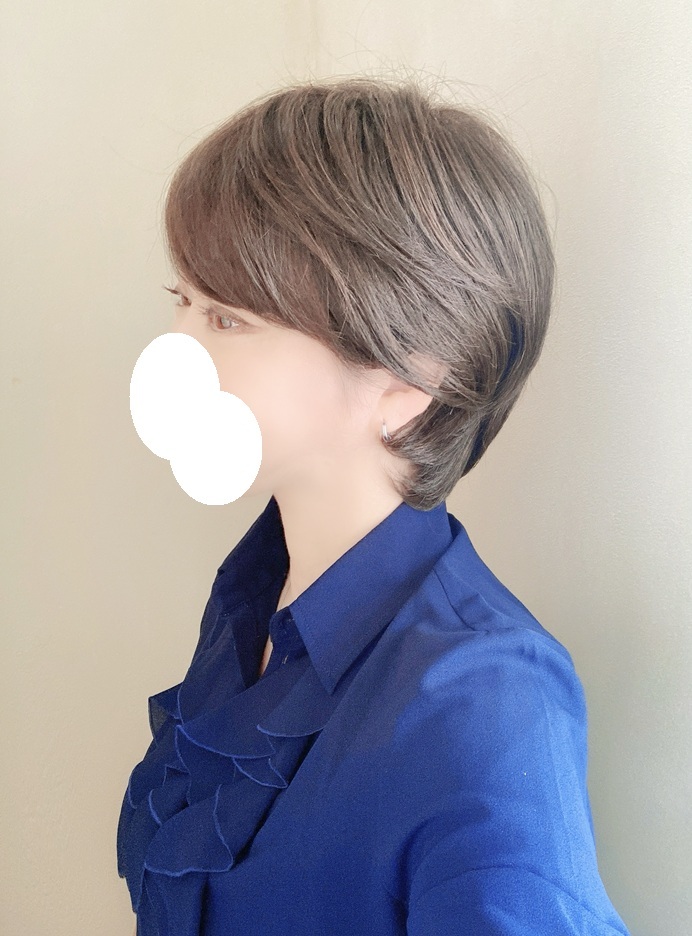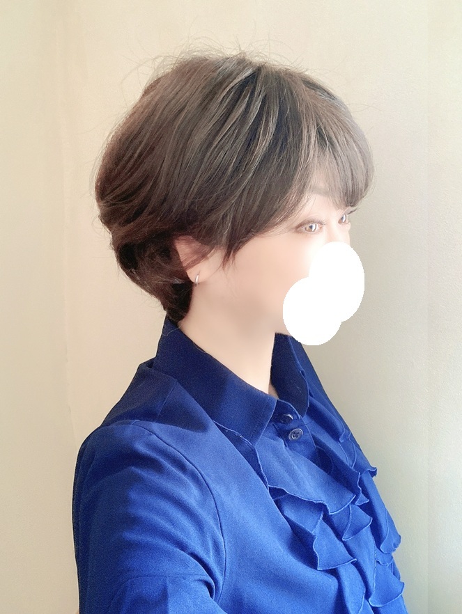 ■髪の長さ(全てキャップ際から):前髪約12cm、サイド(もみあげ)約13cm、ネープ(襟足)約8cm、トップ約17cm