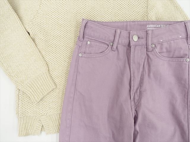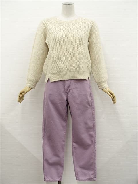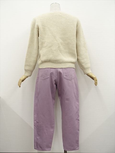 長袖ニットセーター+デニムスリムパンツ コーディネート上下2点セット M相当 ベージュ系/パープル カジュアル・シンプル系 30~40代