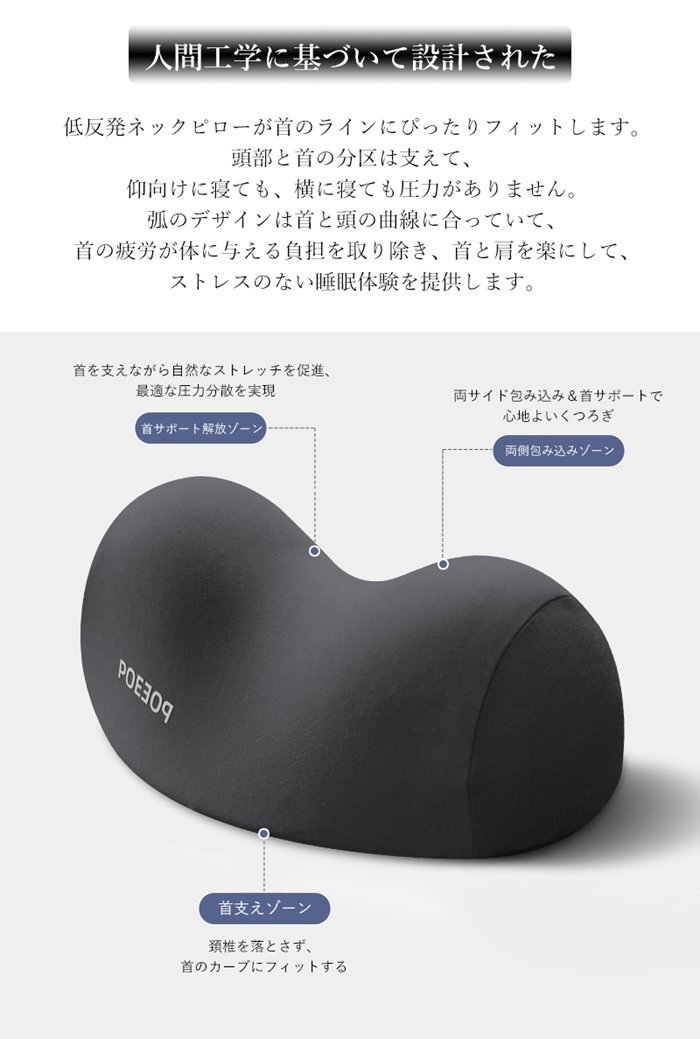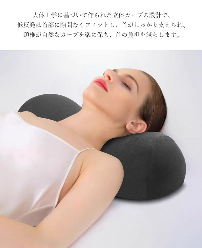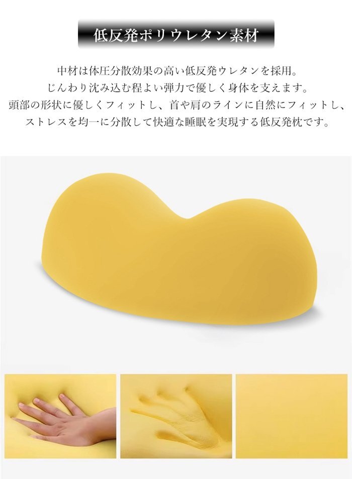 頭部の形状に優しくフィットし、首や肩のラインに自然にフィットし、ストレスを均一に分散して快適な睡眠を実現する低反発枕です。