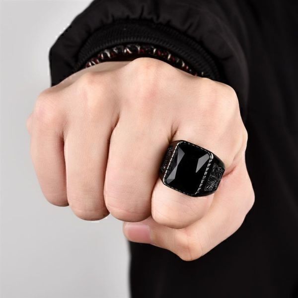 MA230:【定価29800円】1円スタート 格安 ファッションリング ブラック レッド ストーン ロック ジュエリー