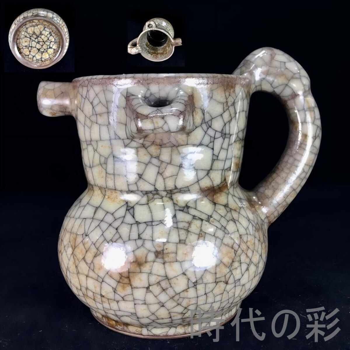 【美の継承】中国古美術 宋時代 哥窯 執壺 酒道具 酒? 酒器 古玩 唐物 青磁 陶磁器 古陶磁 旧家蔵出 古美味 R07102104