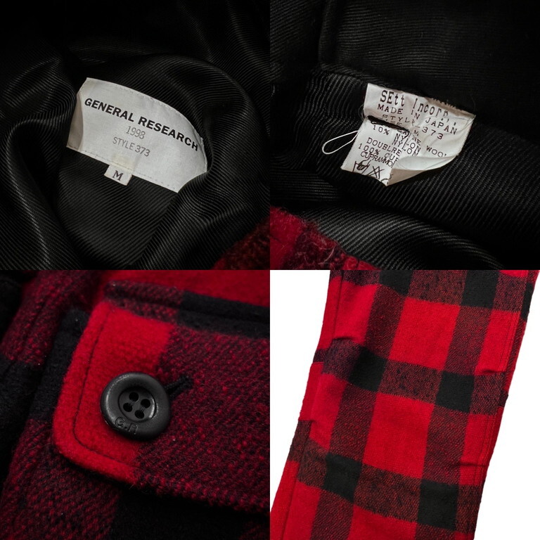 | STAFF COMMENT | GENERAL RESEARCH 1998 MOTOCROSS PANTS ウールメルトンバッファローチェックベルテッドモトクロスパンツです。様々な柄で展開されていたモトクロスパンツ。こちらはウールメルトン生地を使用した厚手のバッファローチェック柄モデルです。ウエストにはベルトを配備。すべてのボタンにはG.Rの刻印入りオリジナルボタンが採用されています。膝にはカーゴパンツ等と同様にタックを取り立体的な構造に。印象的なバックポケットの他に、左右スラッシュポケット、ウォッチポケットの計5ポケットを配備しています。裾にはドローストリングが通いシルエットやフィット感を調節可能。希少な90sのジェネラルリサーチのアイテムです。若干の使用感はあるかと思いますが、目立った傷や汚れもなくまだまだお使いいただけます。 |