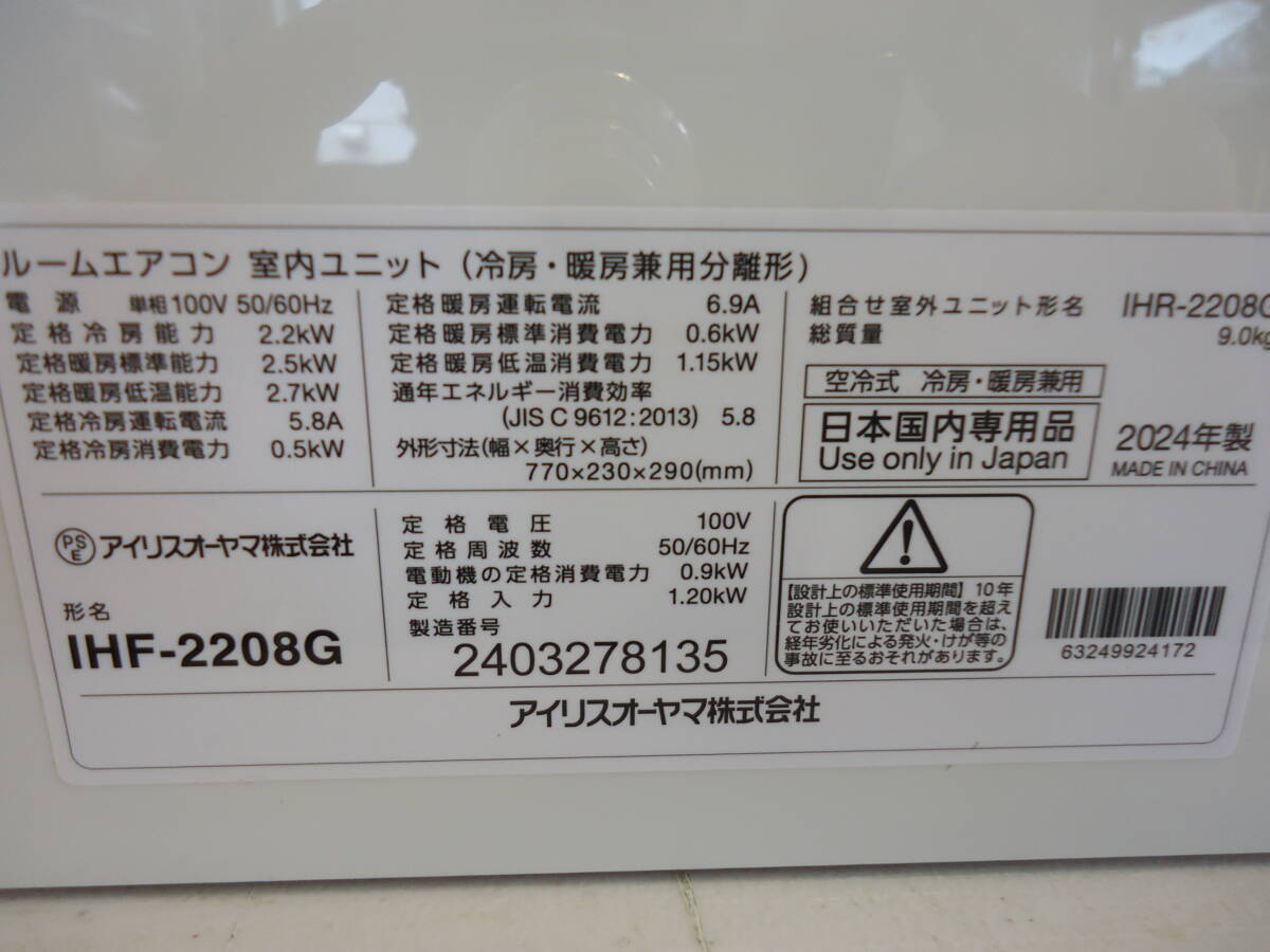 | ★商品説明★ | ☆☆たくさんの出品の中からご覧いただきありがとうございます☆☆ ☆入札の際には注意事項を必ずお読みになってからお願いします☆ ◆メーカー:IRIS アイリスオーヤマ ◆型式: IHF-220G ◆年式:2024 ◆付属品:リモコン ◆簡易清掃済み ◆ポンプダウンをしておりますが、使用状況によりガス残量が少ない場合がございます。 ◆万が一ガス不足の場合は場合は札者様でお願いします ◆USED品であることのご理解くださいませ ◆室内機・室外機・背板・リモコンの出品です ◆発送は家財便Aランク+Bランクの予定です |