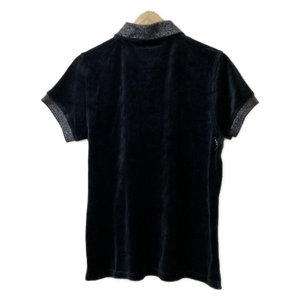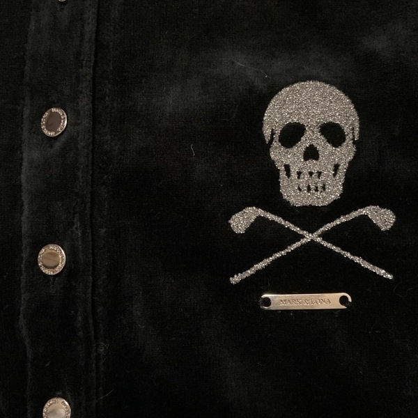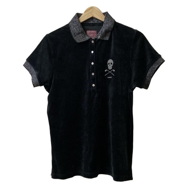 マークアンドロナ MARK&LONA 半袖ポロシャツ サイズL 黒×グレー レディース ベロア/スカル/ラメ トップス