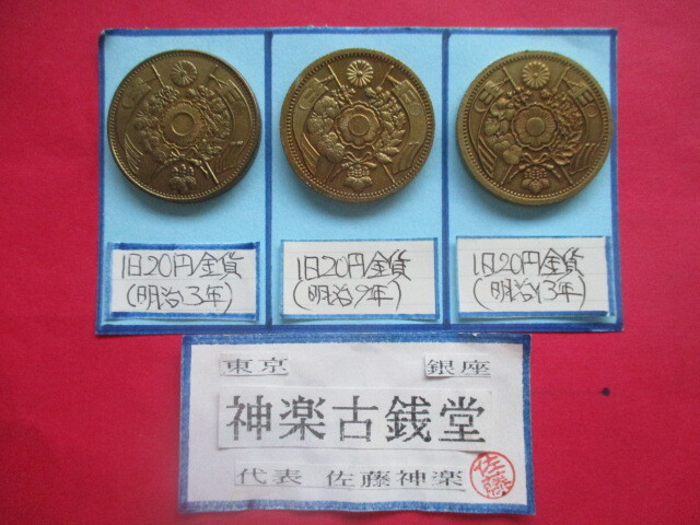 【身辺整理】古銭コレクション 旧二十円金貨3点一括(明治3年、明治9年、明治13年)