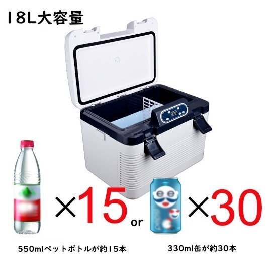 【19L大容量】550mlのペットボトルは縦に入ります。従来の車載冷蔵庫より便利性が一層改善されました。330ml缶が約30本/550mlペットボトルが縦に約15本入ります。ショルダーストラップ付きで持ち運びも便利です。