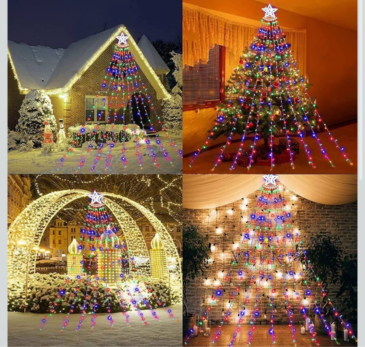 直径32cmの輝くスターから広がる9本のドレープライトが、ツリーのように美しく輝きます。