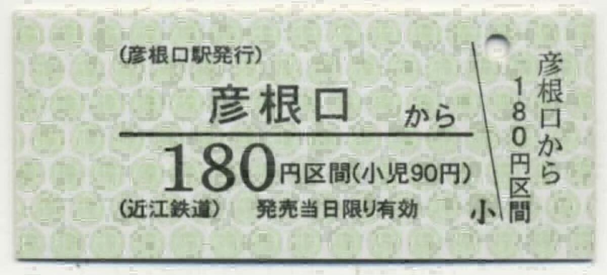 【近江鉄道】B型/彦根口から180円区間(常備券)