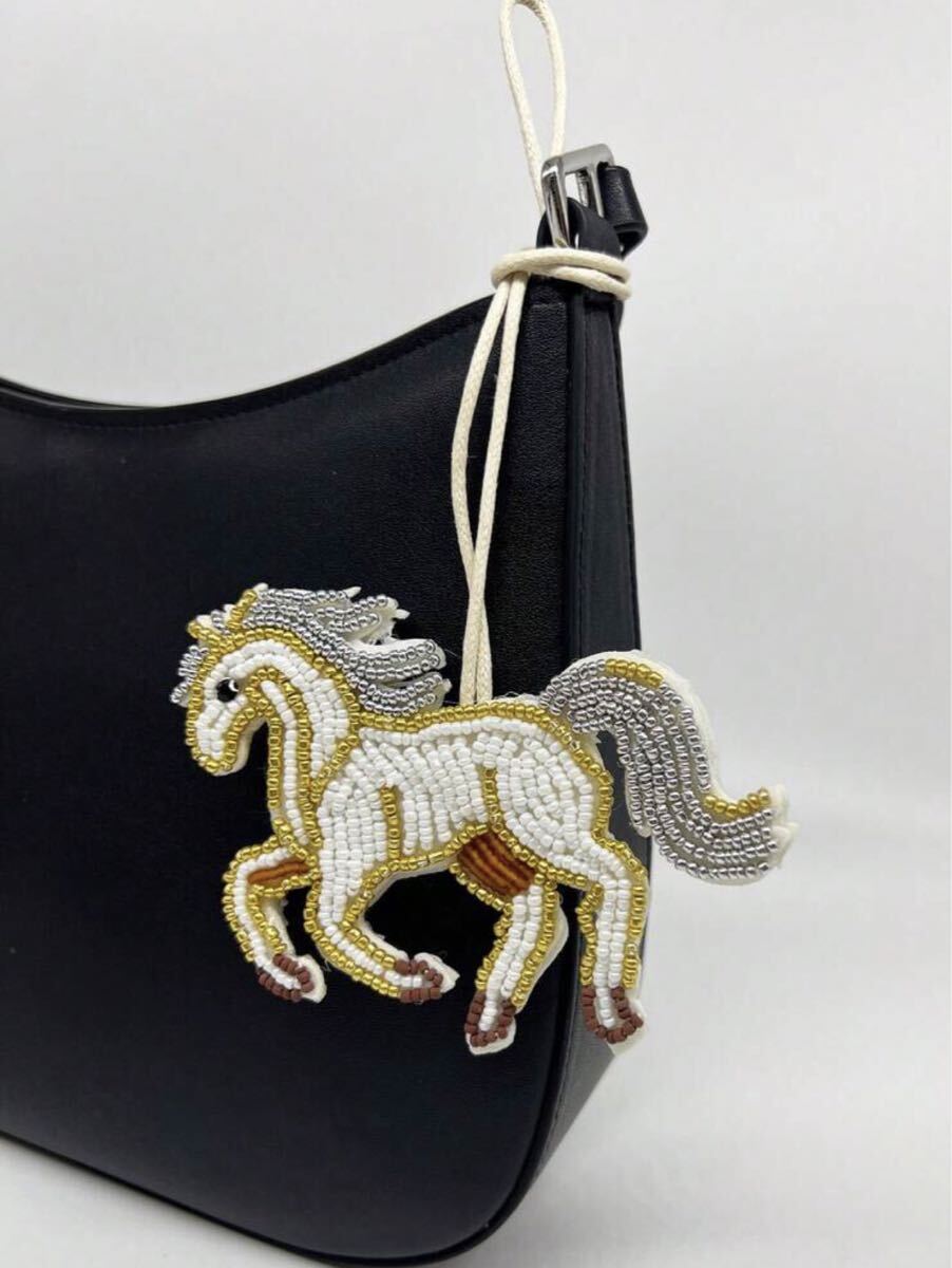 乗馬 馬 チャーム バッグ アクセサリー 芦毛 ビーズ