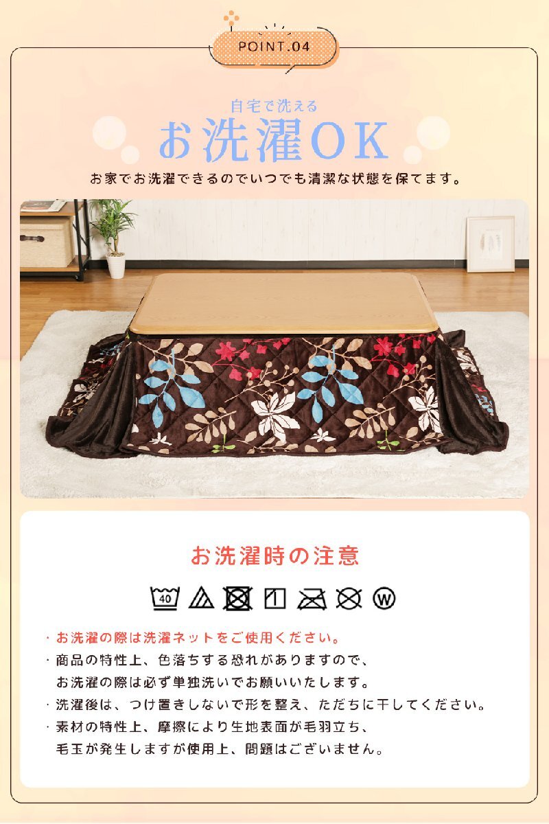 こたつ布団 掛け布団 80×120cm用 こたつ コタツ 長方形 フランネル 保温 あったか 省スペース スリットタイプ キルト加工 洗える