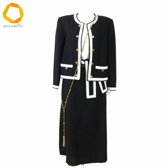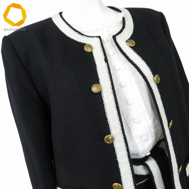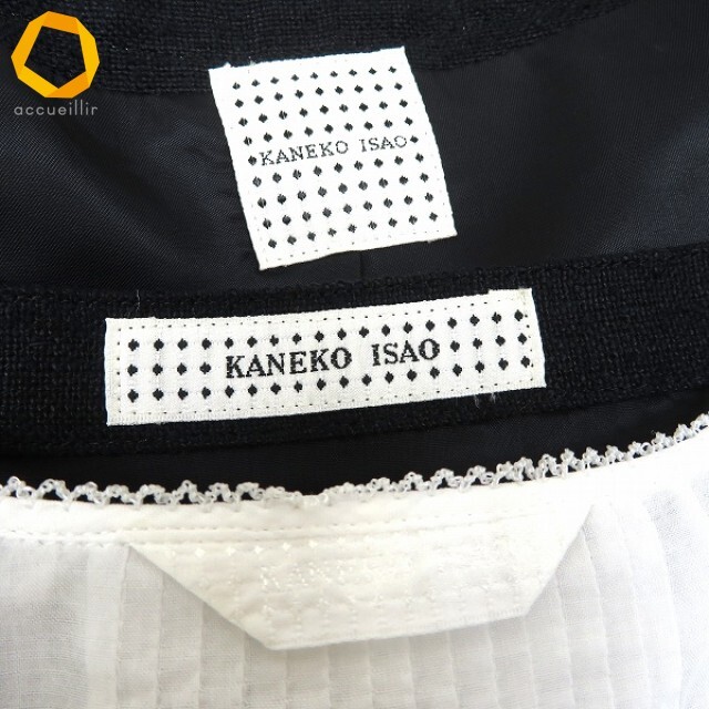 | 商品名 | #au カネコイサオ KANEKO ISAO セットアップ 黒 白 シルク混 麻混 ノーカラー ブラウス・ネックレス付き ヴィンテージ [970924] k01 |
