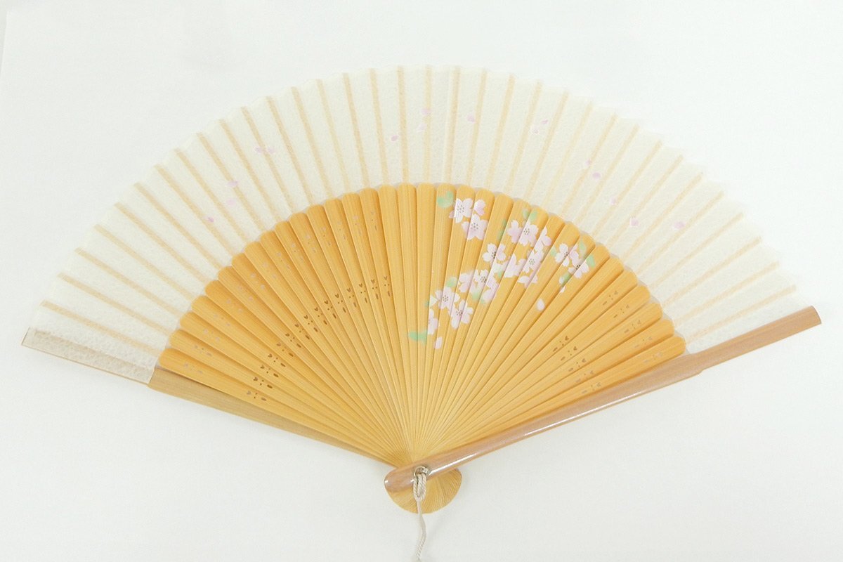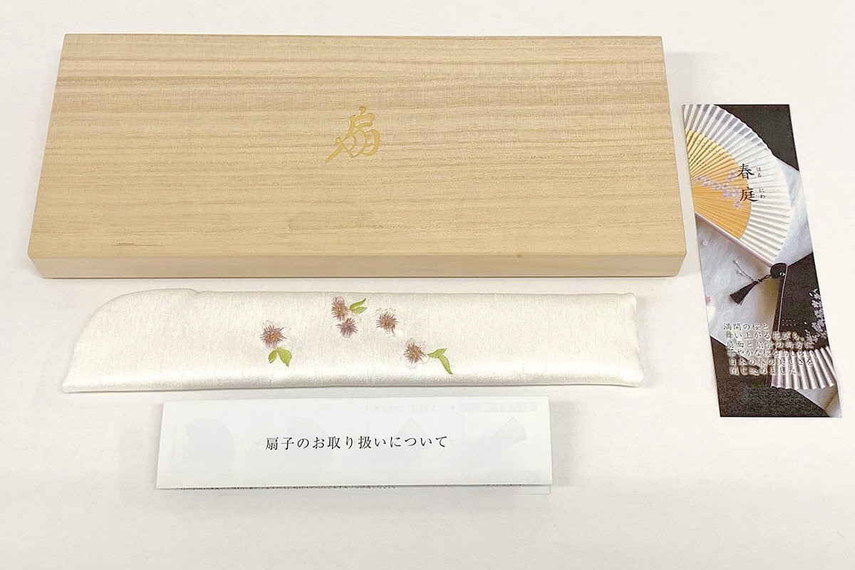 MO62 [送料無料/中古美品] 舞扇堂 女性用扇子 春庭 ホワイト