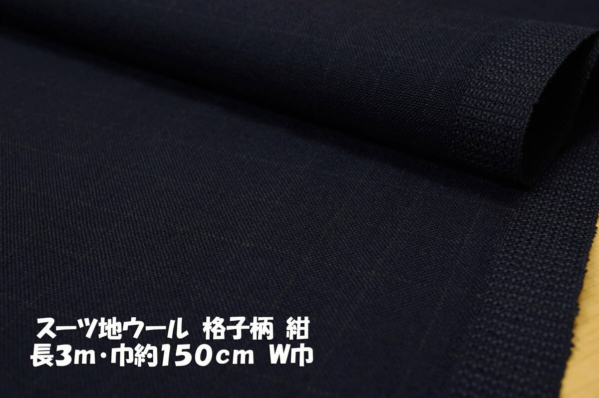 一般的なスーツ地程度の布地で、色調:格子柄/紺で、サイズは長3m・巾約150cmW巾