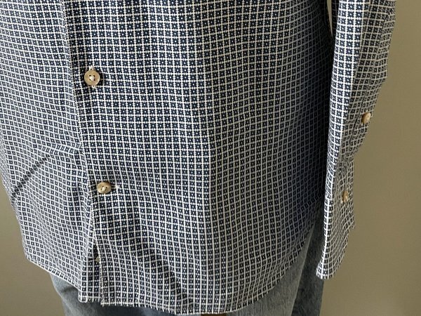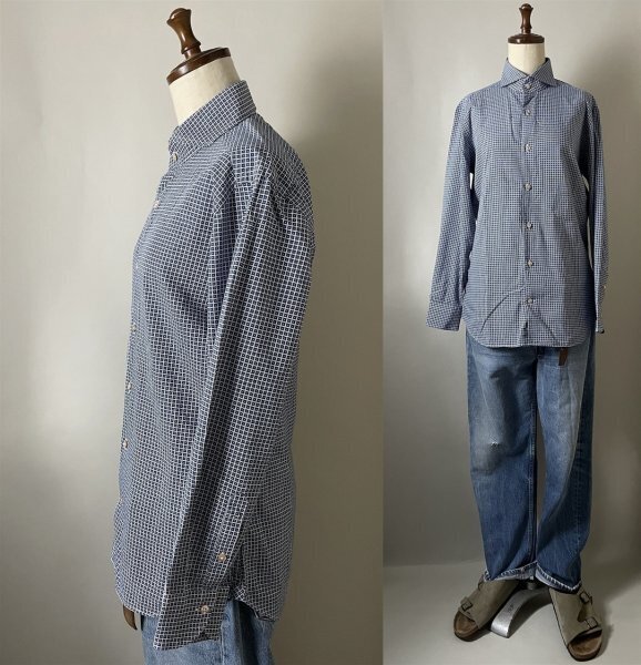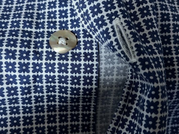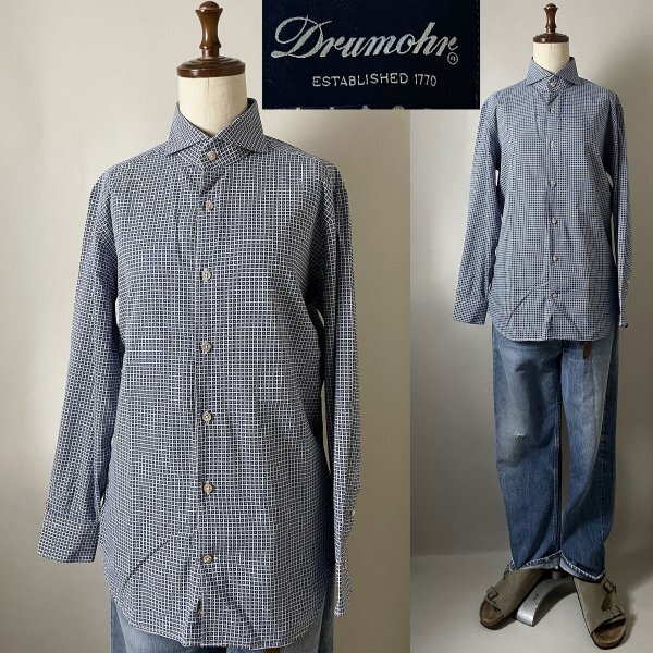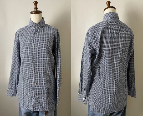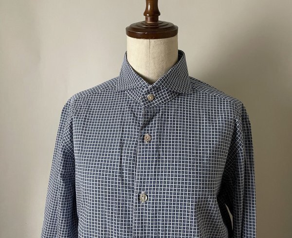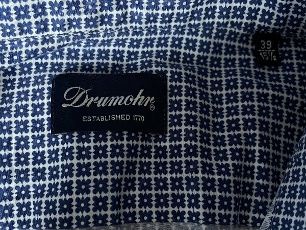 ★【名作 BEAMSF 購入イタリア製 国内正規品 第4ボタン変形有】美品 Drumohr ドルモア 総柄 長袖 ロングスリーブ シャツ 39 (15 1/2) ネイビー