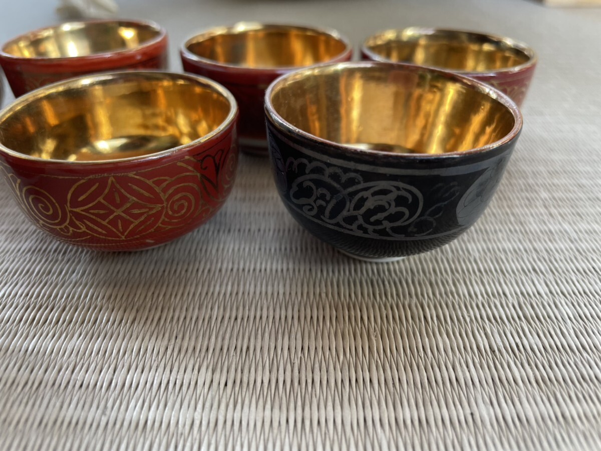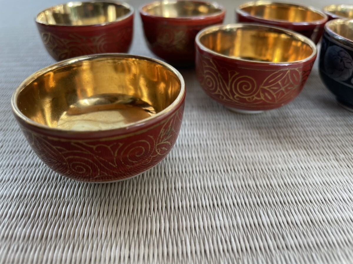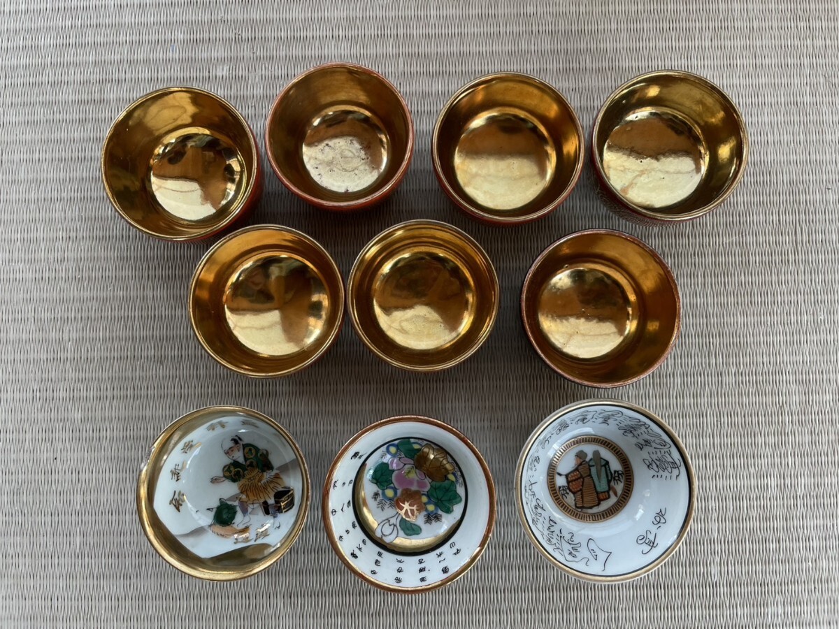 アンティーク 九谷焼 お猪口 金盃 ぐい呑 赤絵 金彩 酒器 骨董品