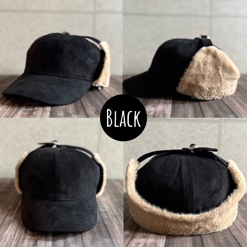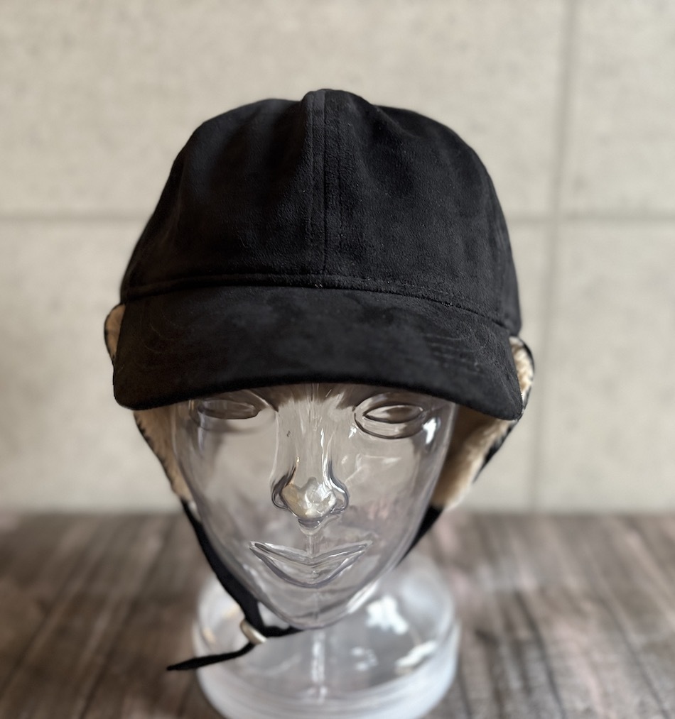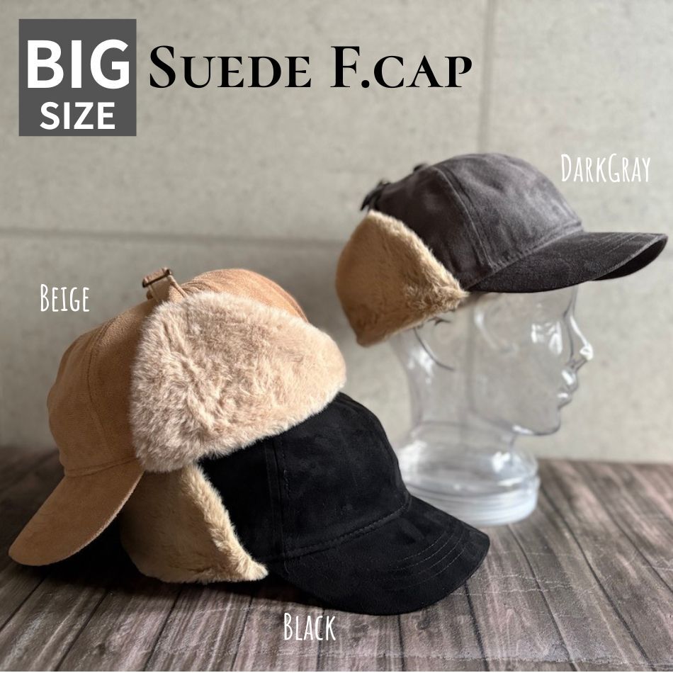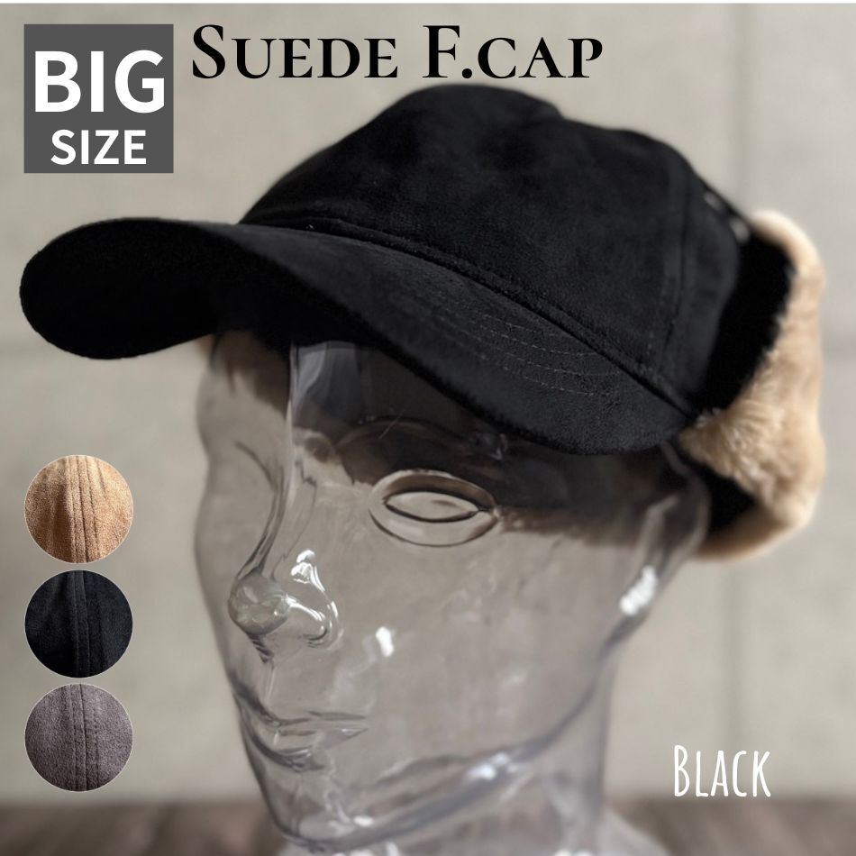 帽子 Lサイズ フライトキャップ イヤーフラップ キャップ スエード調 防寒 2WAY 耳当て付き スエード素材 BIG 60cm 大きいサイズ bk