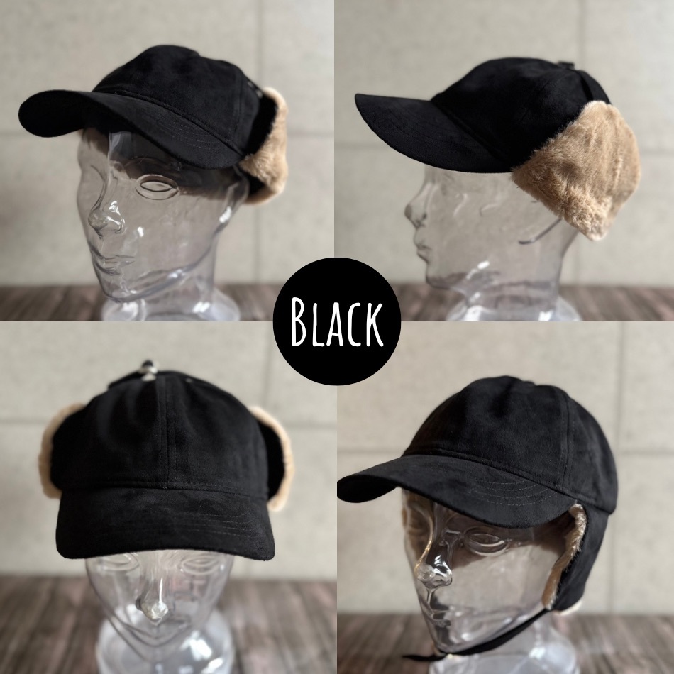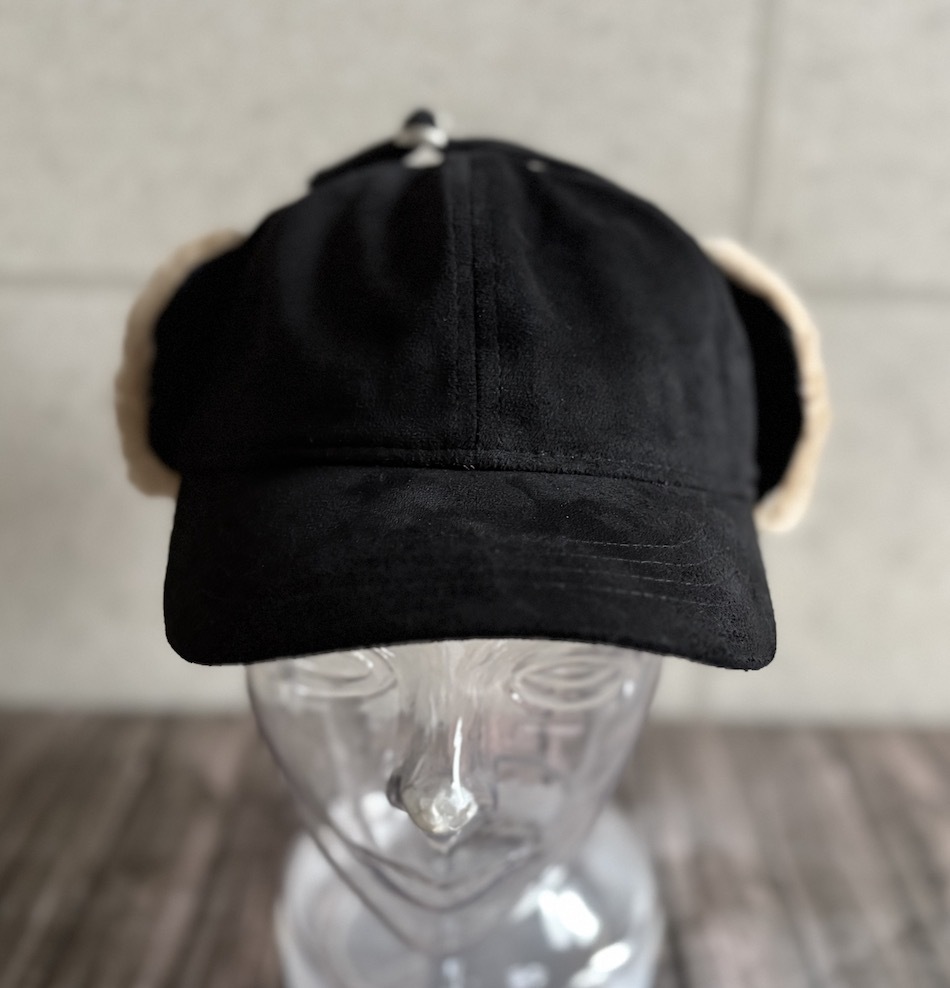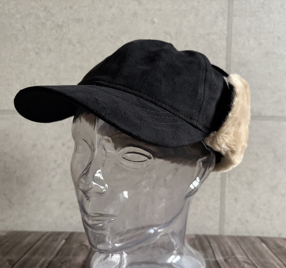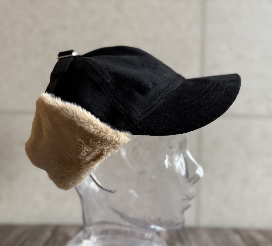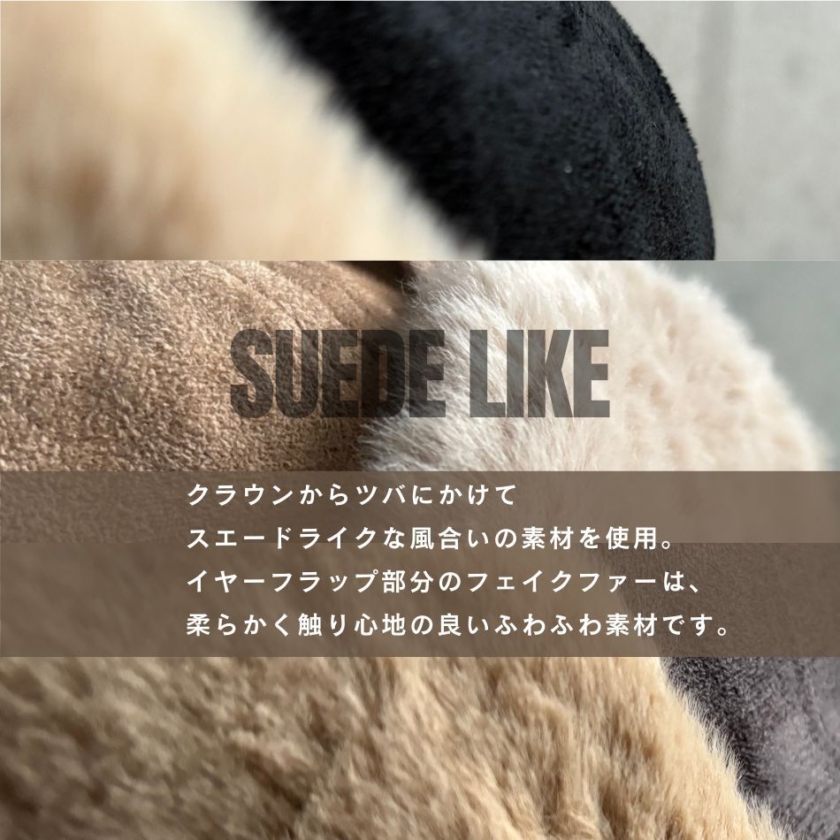 スエードライクな素材感が上品で、ファーの耳当てが寒い季節の防寒対策に最適です。