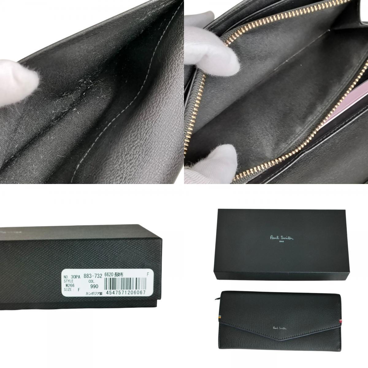 良品 Paul Smith ポールスミス レザー スタンピングロゴ 二つ折り長財布 ロングウォレット ブラック