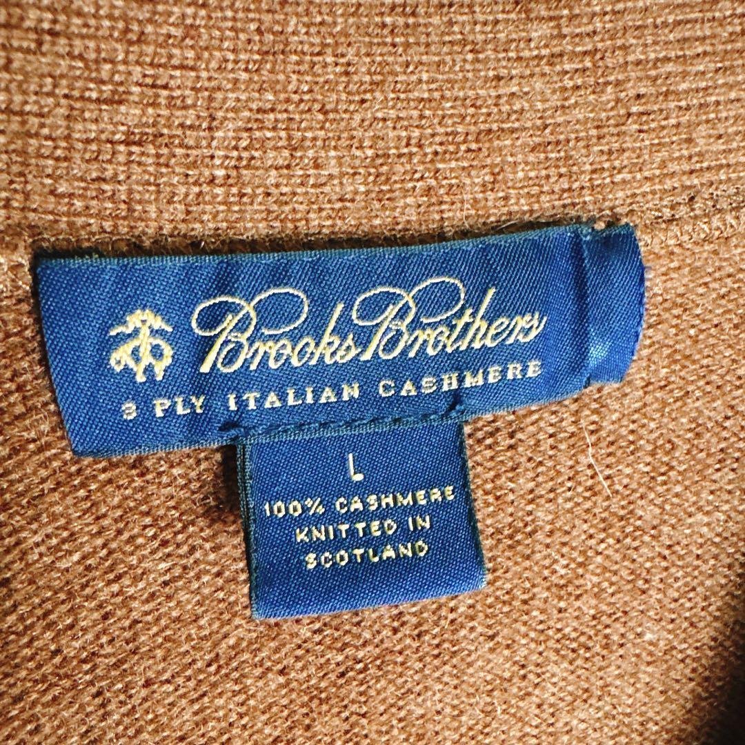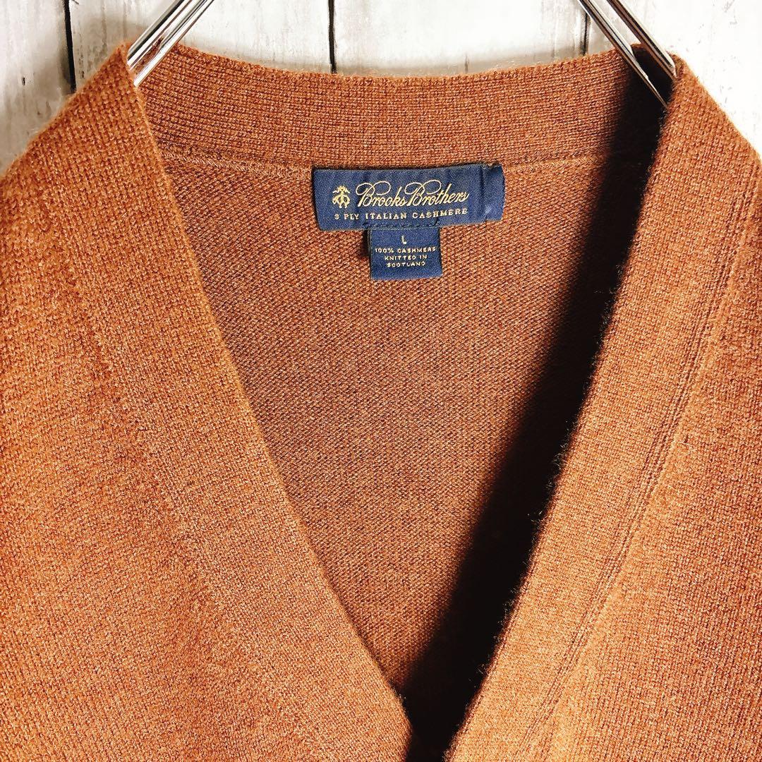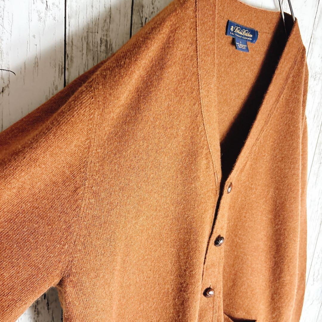 90sファッションのリバイバルにより古着男子、古着女子に人気のBrooksBrothers、カシミヤ100%のカーディガンです。