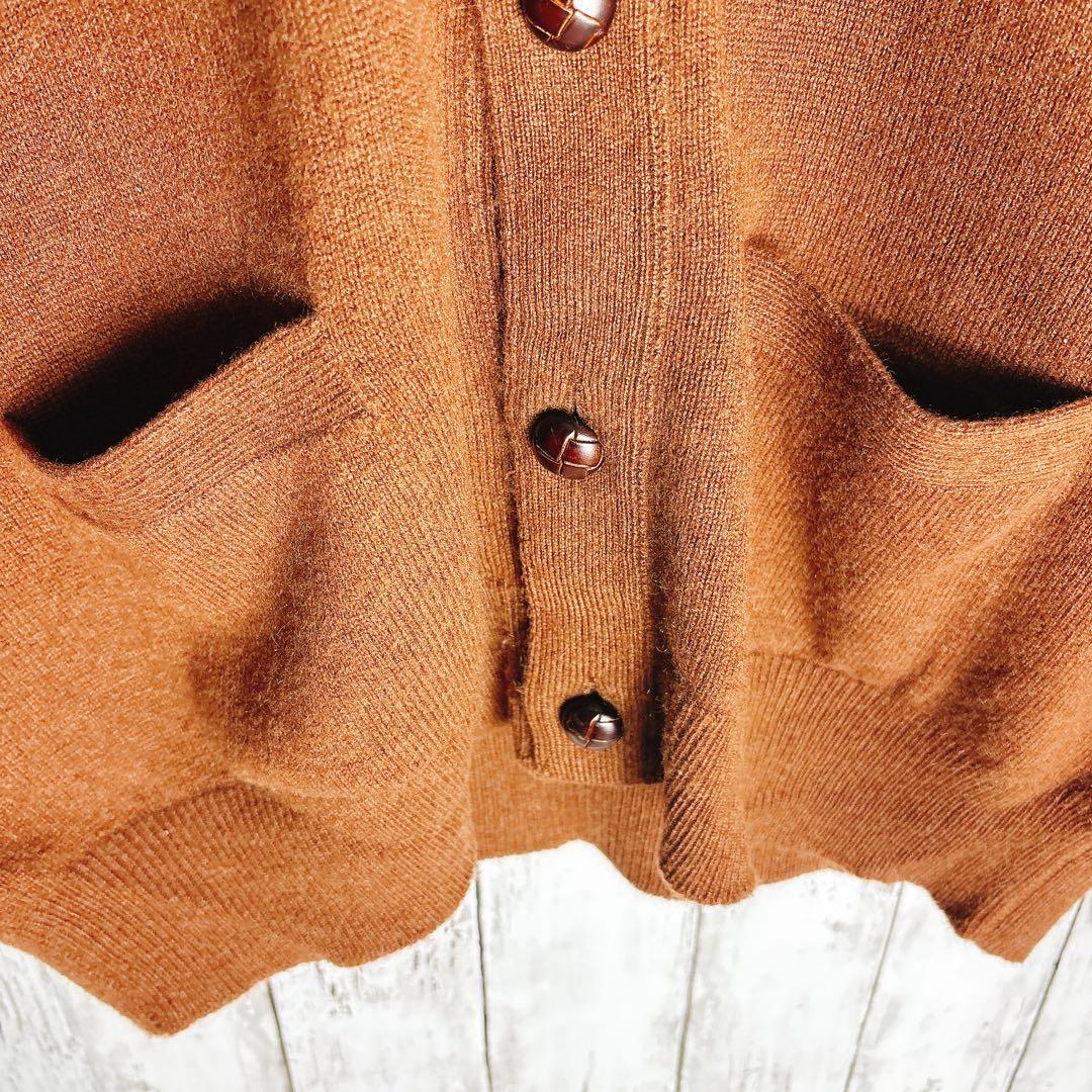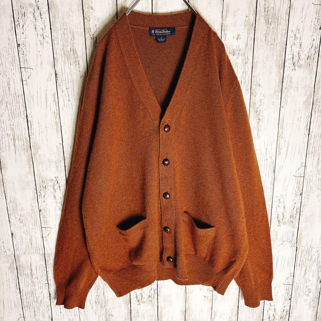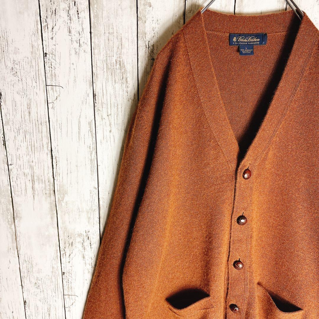 90sファッションのリバイバルにより古着男子、古着女子に人気のBrooksBrothers、カシミヤ100%のカーディガンです。