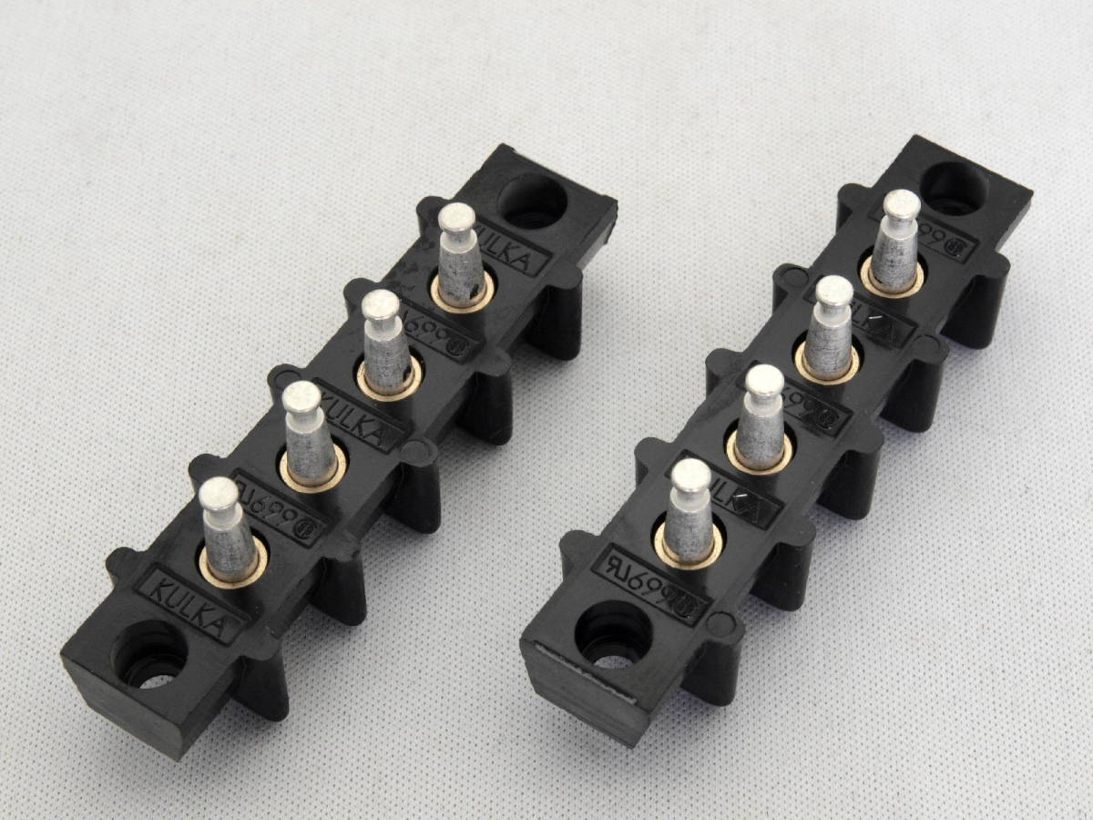 米国Kulka社製の 4P バリアターミナル 新品2個(1組)です。Marantz 8Bの補修用に使用できます。製造年代は大きく異なりますが当時と同じ製造会社同じ型番号の部品です。端子の留めねじ頭はプラスドライバーとマイナスドライバーの使用が出来るコンビネーションヘッドになっています。ネジの表面処理はニッケルメッキです。