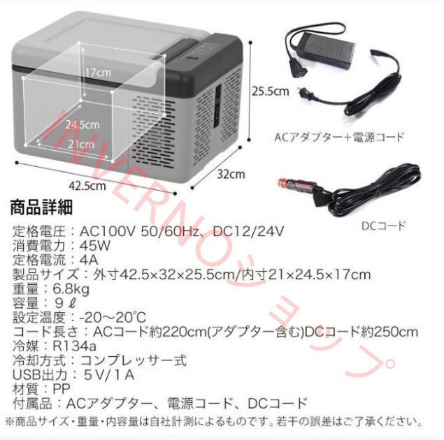 ポータブル 車載 冷凍冷蔵庫 9L 電源 冷蔵庫 冷凍庫 保冷庫 AC / DC 両電源 ポータブル冷蔵庫 家庭用 (A455)