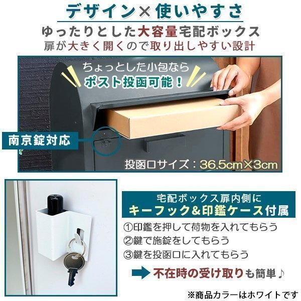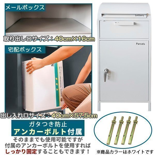 宅配ボックス 一戸建て用 おしゃれ ポスト一体型 大容量 郵便受け 置き型ポスト 郵便ポスト スタンドタイプ 鍵付き ホワイト