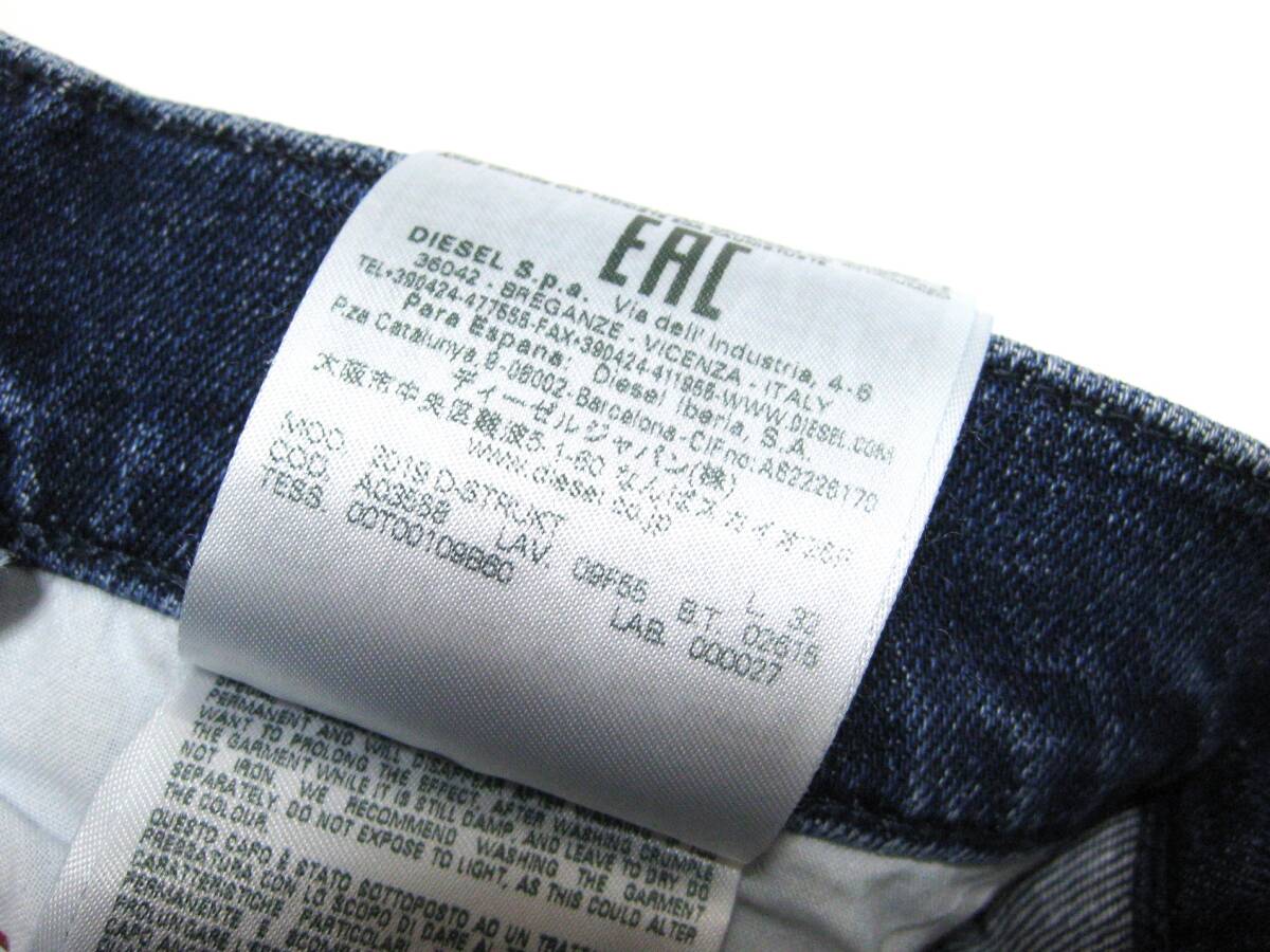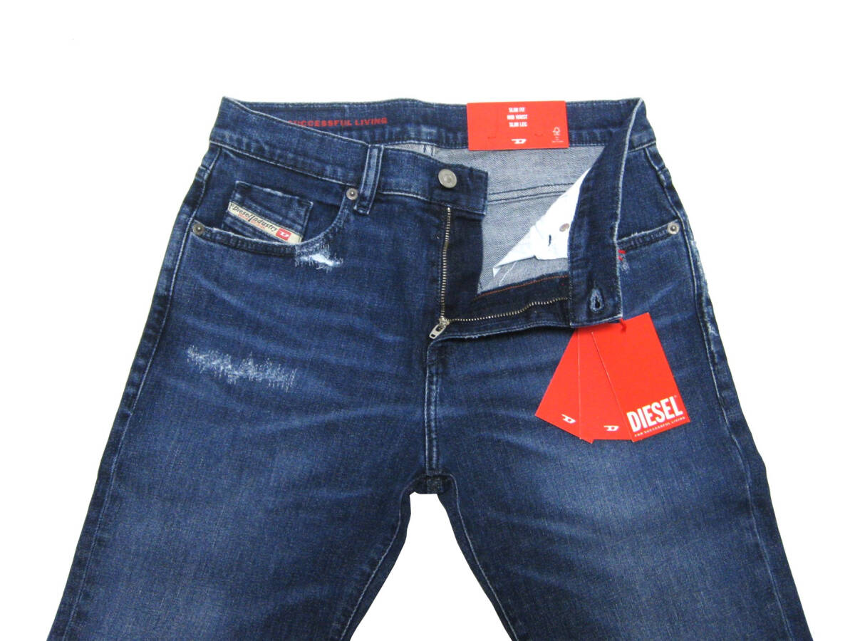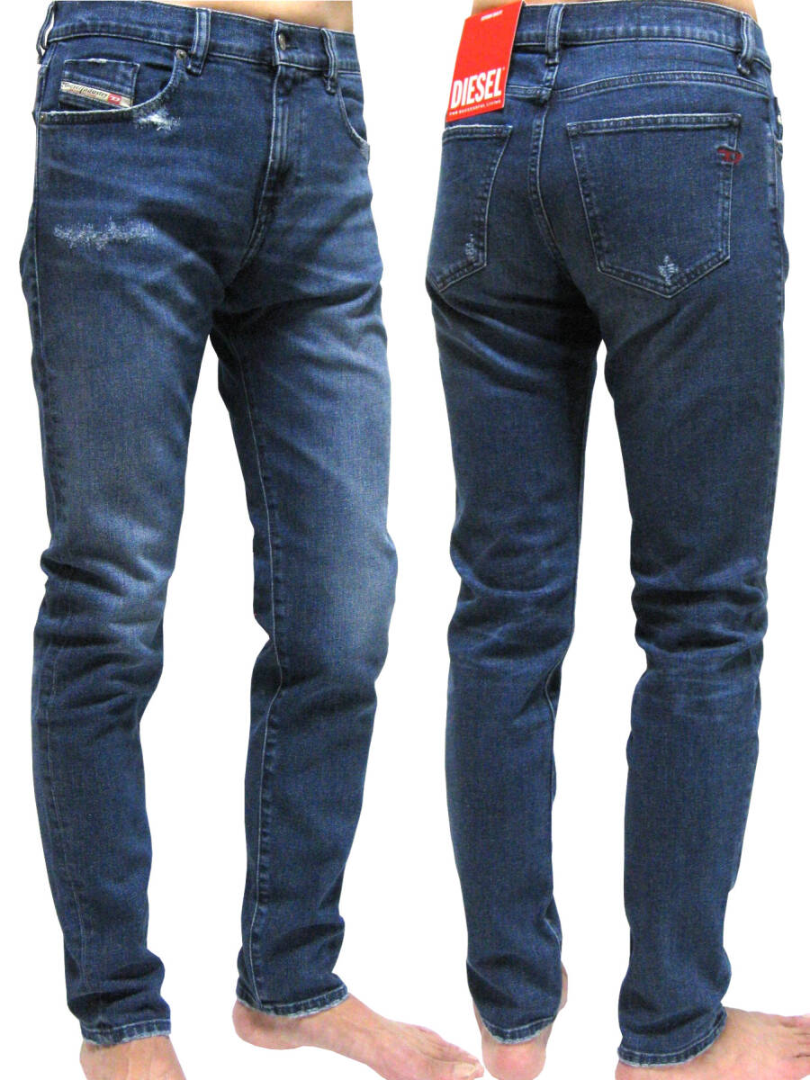 新品 直輸入 DIESEL ダメージリペア加工 スリムテーパード ストレッチ インディゴジーンズ W30インチ 2019 D-STRUKT 09F55
