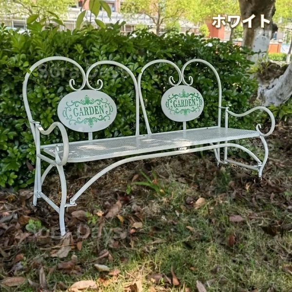 ガーデンチェア ホワイト ベンチ 二人掛け ヴィンテージ風 アンティーク調 おしゃれ エレガント インテリア 北欧 庭