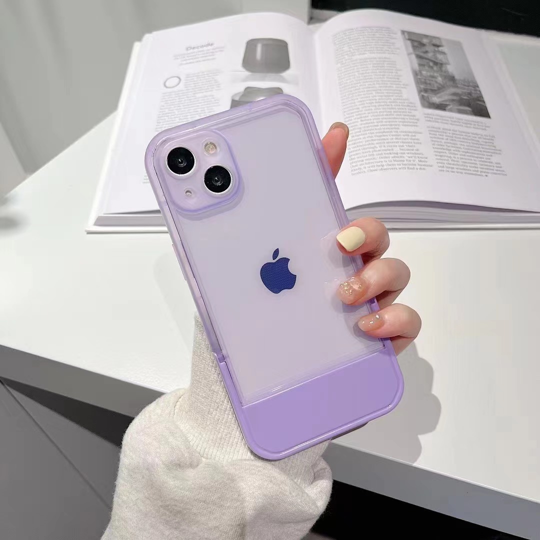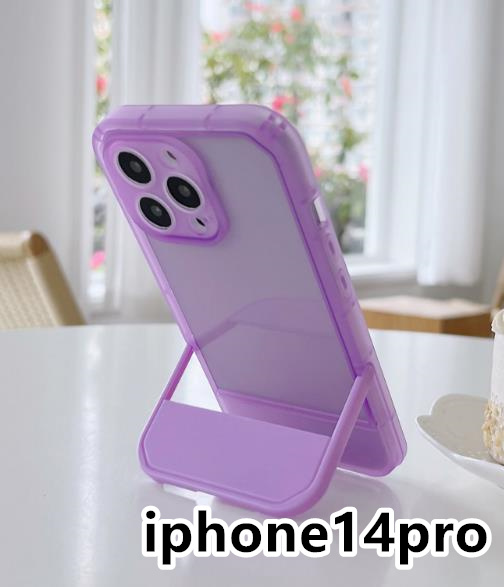 iphone14proケース カーバー スタンド付き 半透明 お洒落 韓国 軽量 ケース 耐衝撃 高品質 紫