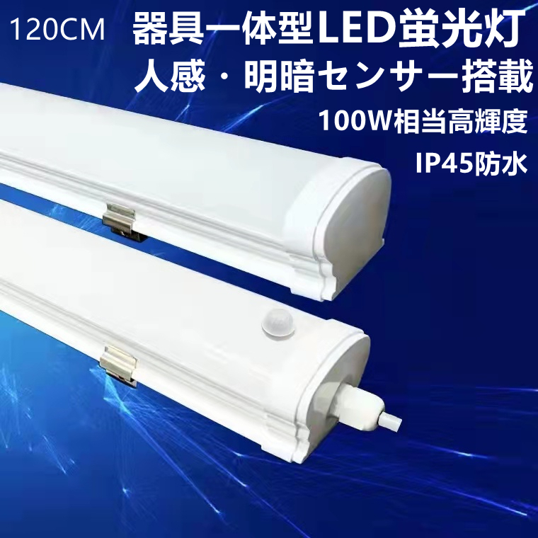 人感センサー 明暗センサー付き ホワイト LED蛍光灯 器具一体型 高輝度 1本入り 100W級 led蛍光灯 昼光色 120cm 昼白 白 防水 自動点