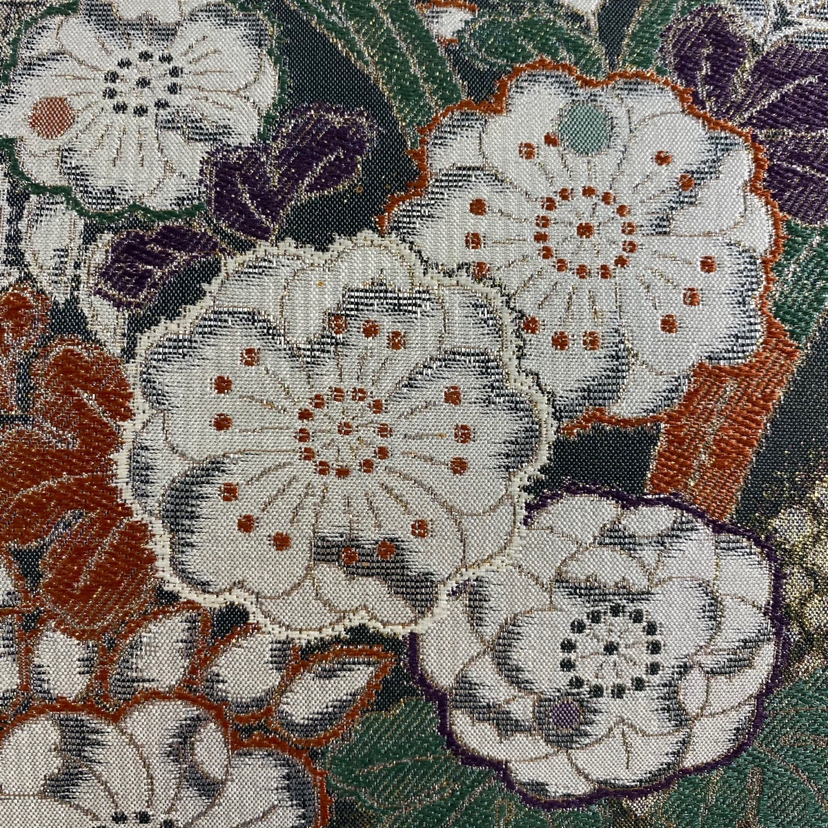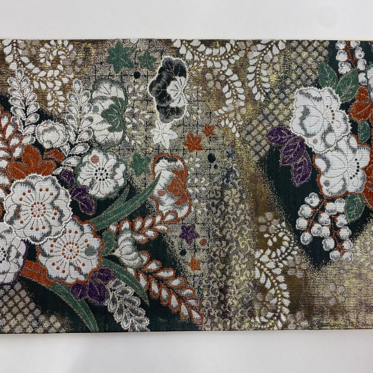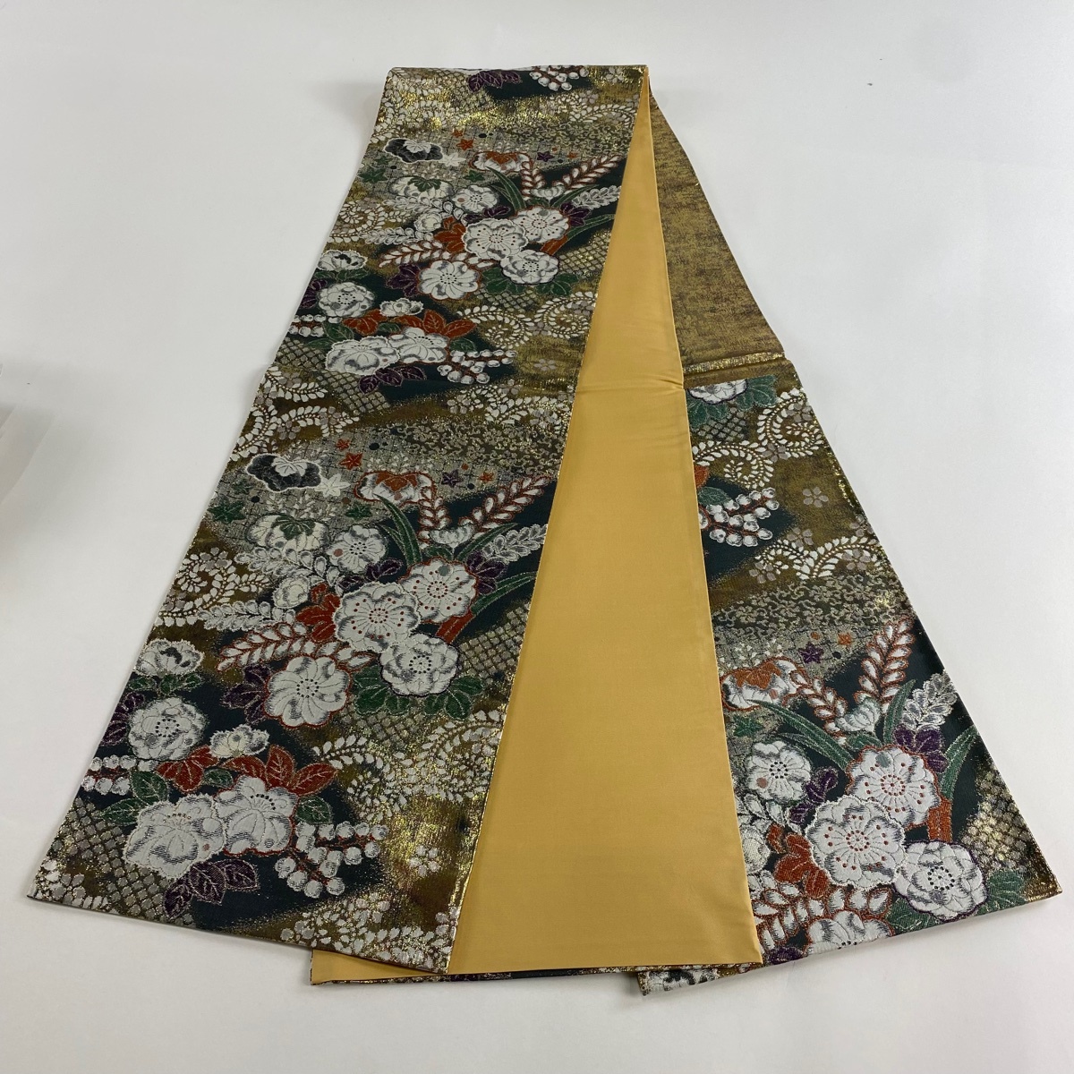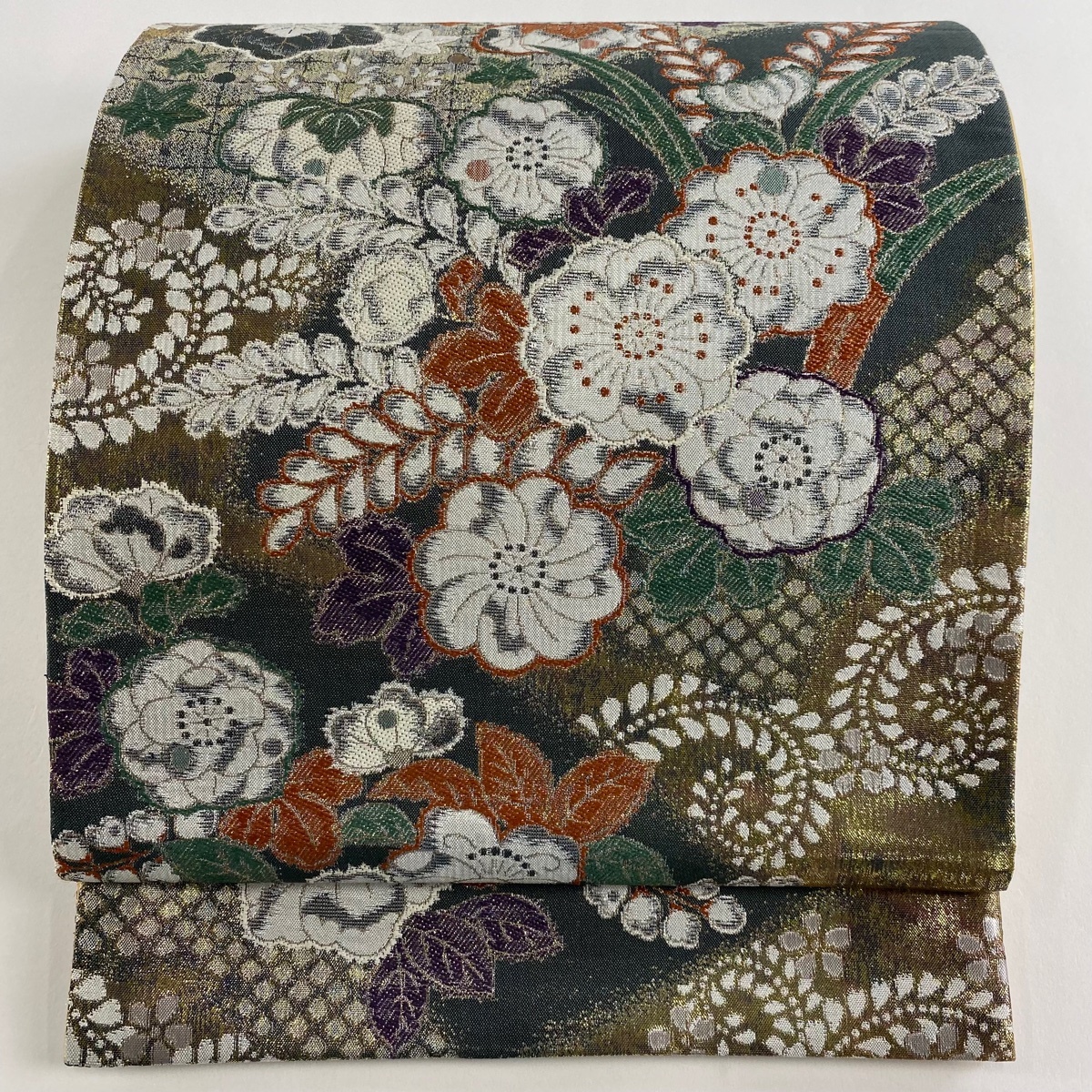 | 袋帯 美品 秀品 草花 唐草 箔 灰緑 六通 正絹 【中古】 |