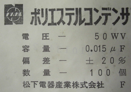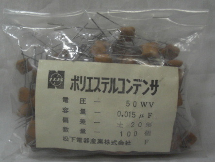 | National/ 50V 0.015uF 積層メタライズドポリエステルフィルムコンデンサー(100個) ビンテージ品R051218No3 | |