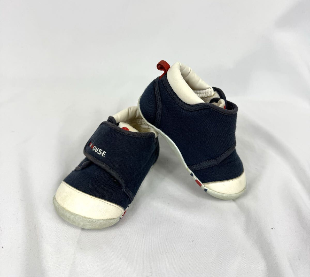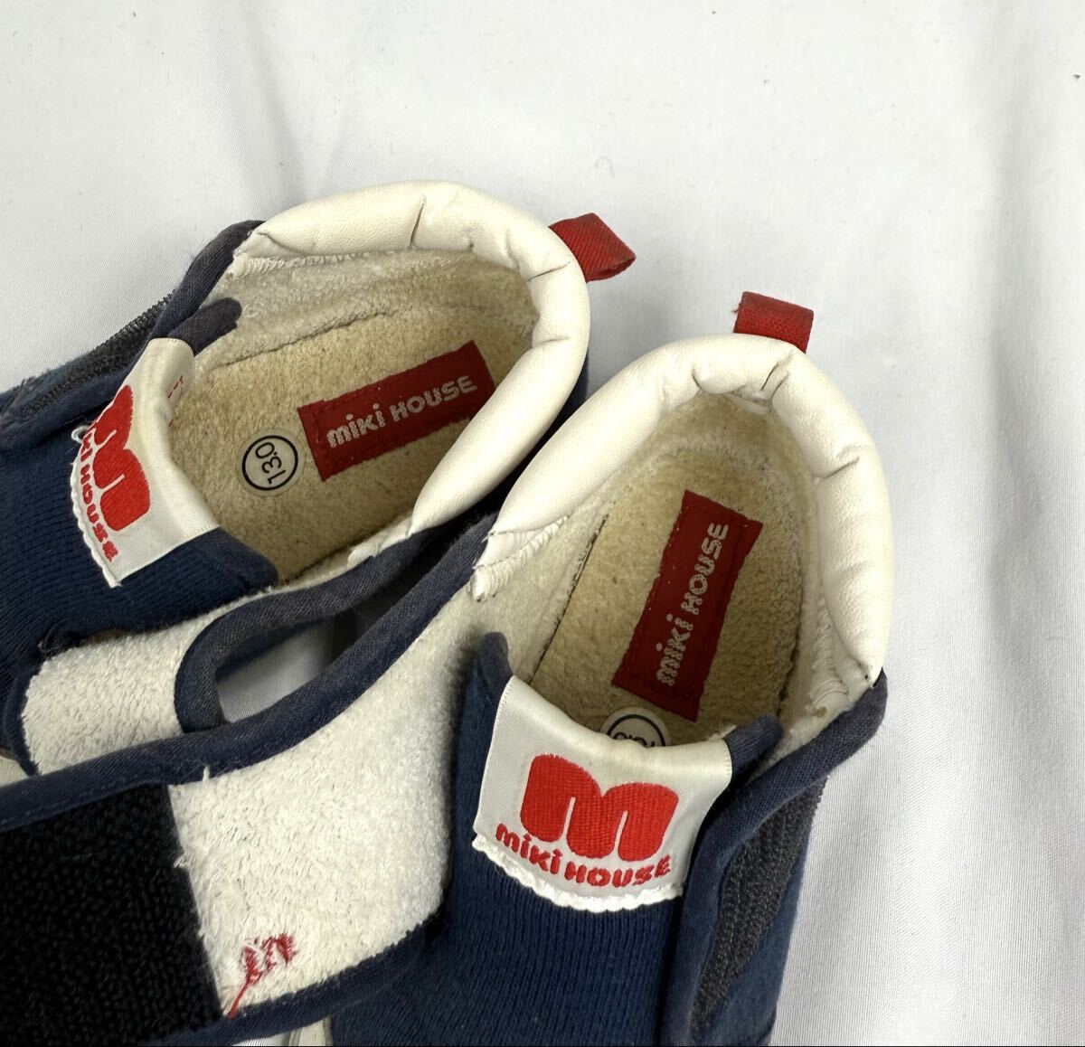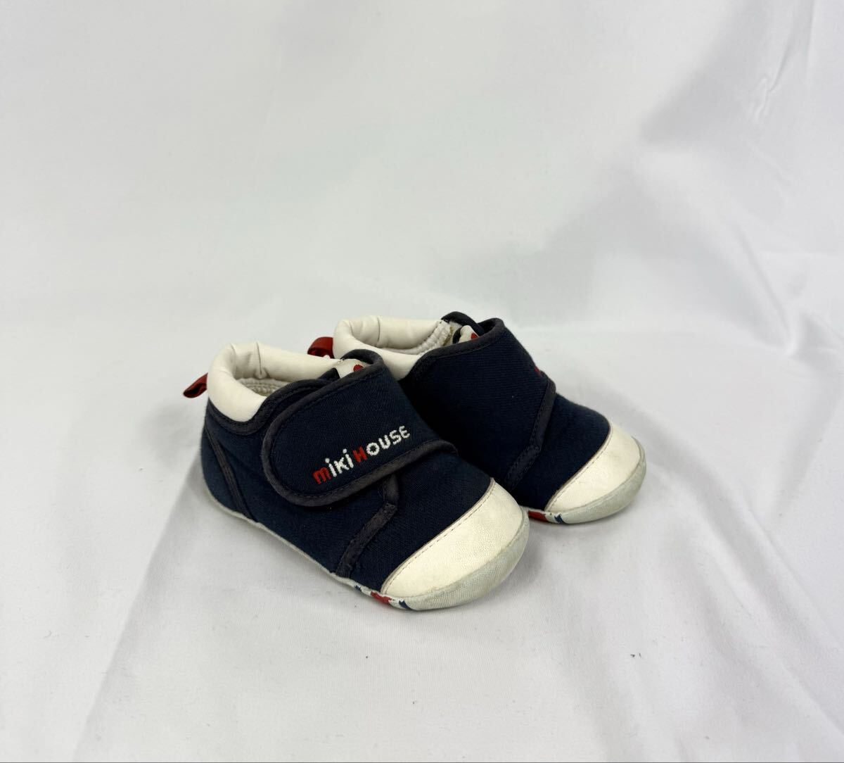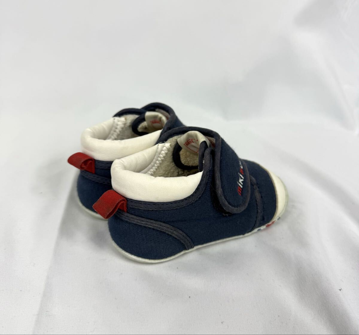 マジックベルトのロゴの刺繍とベロ部分のMマークがミキハウスらしい可愛いポイント。