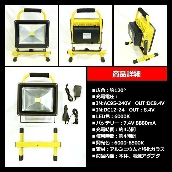高品質 30W LED ポータブル 充電式 投光器 最大 8時間 120° 広角 釣り アウトドア 登山 緑 キャンプ 作業灯 ライト 照明 防水 コードレス