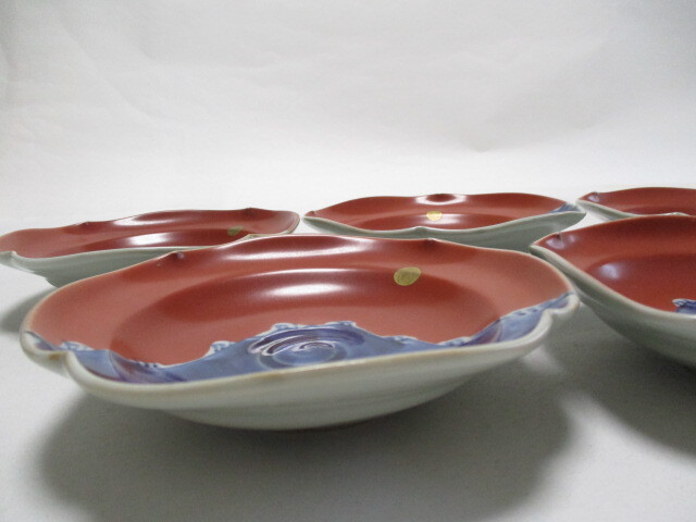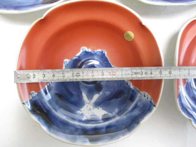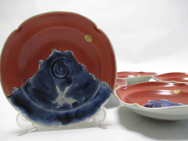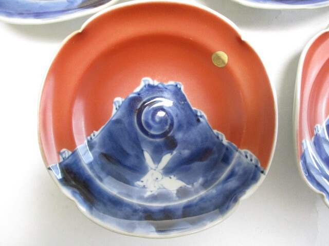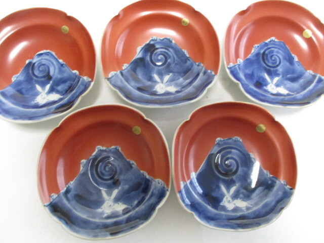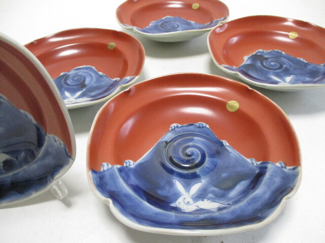 有田焼 手描き染付金彩 月うさぎ 中皿 15.5cm 5枚/ プレート 和皿 富士山
