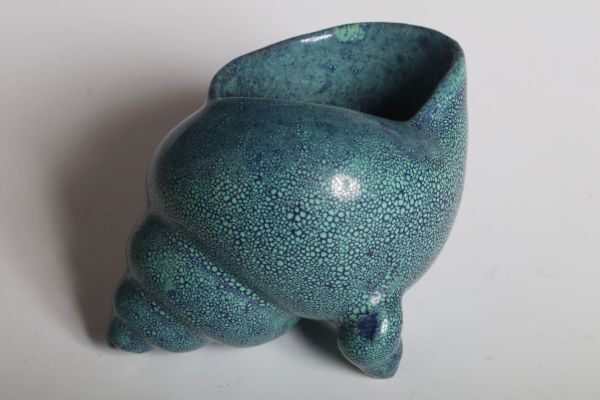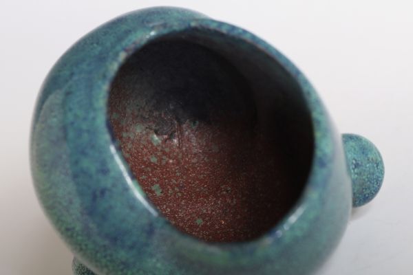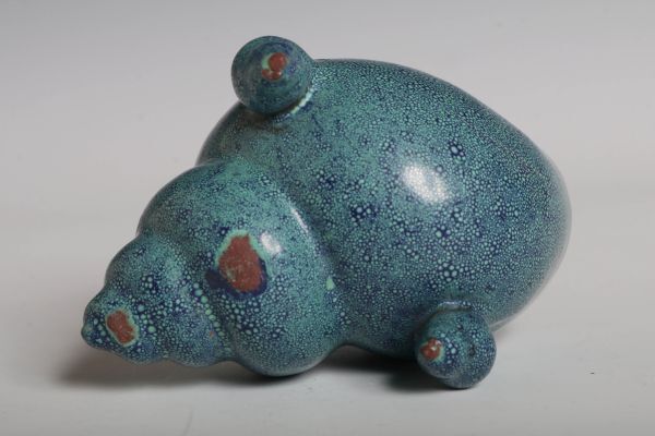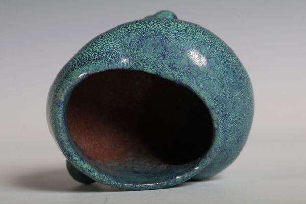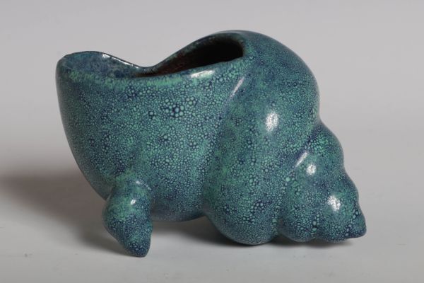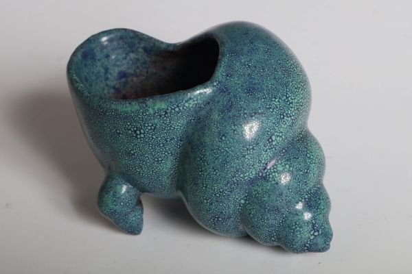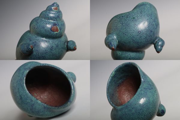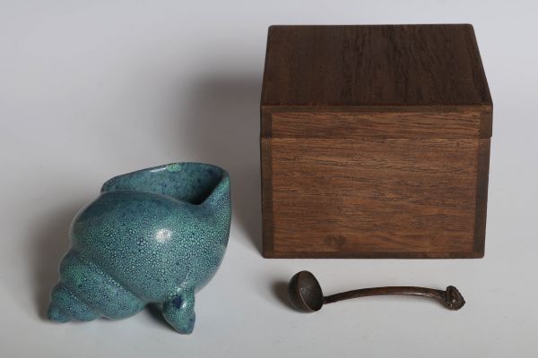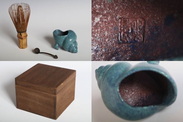N26172 中国陶器 陳鳴遠製 海鼠釉 紫泥炉鈞釉巻貝形水滴(木箱・匙付) 水差 書道具 文房具 検:炉鈞 宜興窯 朱泥 紫泥 中国 古玩 唐物