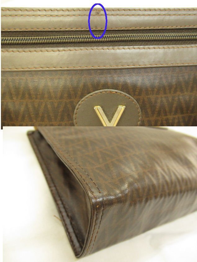 【色】 茶系 【サイズ】 26.5×18.5×5.5 【素材】 PVC、革 【付属品】 なし 【参考定価】 -円 【商品説明】 イタリア製のマリオバレンチノのセカンドバッグです。 ★ネコポス発送は下側を折り曲げるとギリギリ収納が可能です。折りシワが入る可能性があるのでご了承の上でご選択下さい。 -------------------------------------- 【状態ランク】 外観:A~B 中側:A~B 【状態説明】 ・外観は小さなペン先ぐらいの小さな汚れが少しあり、開口部付近の中央に画像7上のような汚れがあります。 ・底カドは画像7下のように目立つ擦り傷などはありませんが、糸が1コマぐらい切れています。 ・中及び内ポケット、外ポケット内に目立つべたつきや剥がれはありません。 ・目立たない程度の小さな汚れ等はご了承下さい。 |