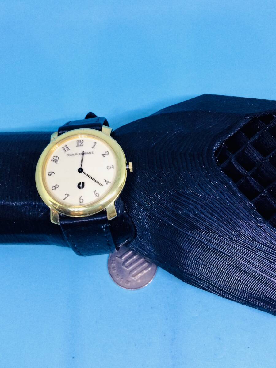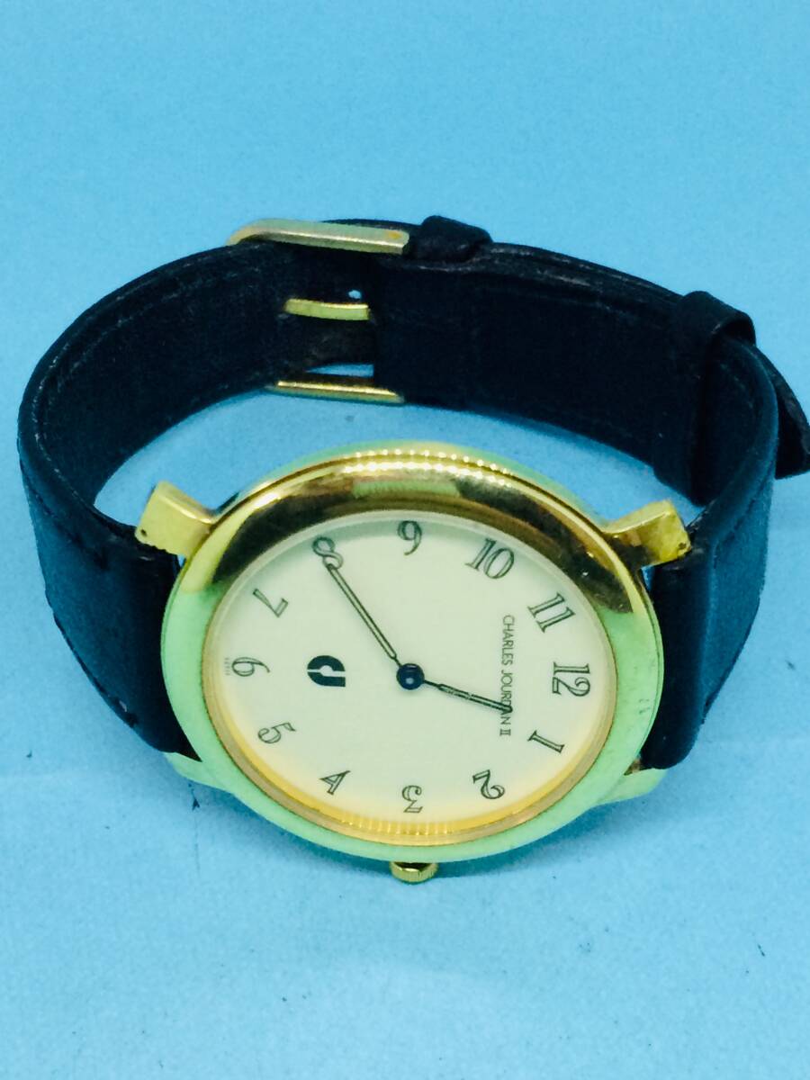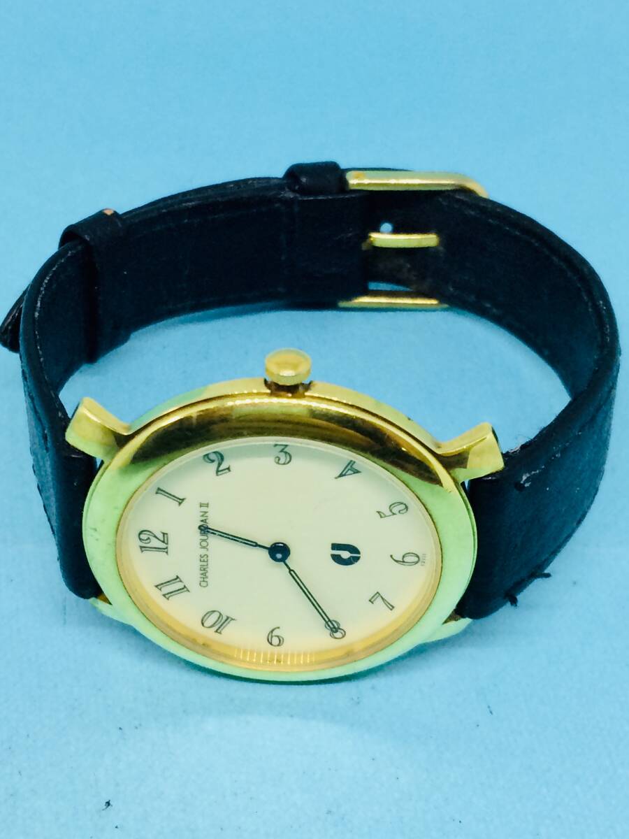 (m18)フランスⅢ(*'▽')CharlesJourdanシャルルジョルダン(電池交換済み)ゴールドメンズ腕時計USED(送料全国一律185円)素敵な時計。