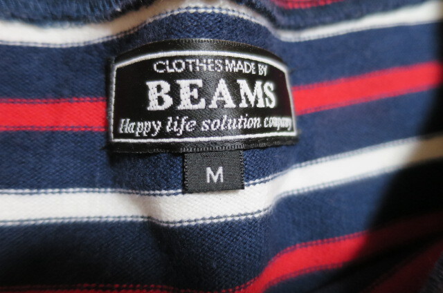 ビームスのボートネック、Mサイズです。ネイビー、白、赤のボーダーです。