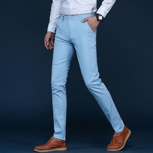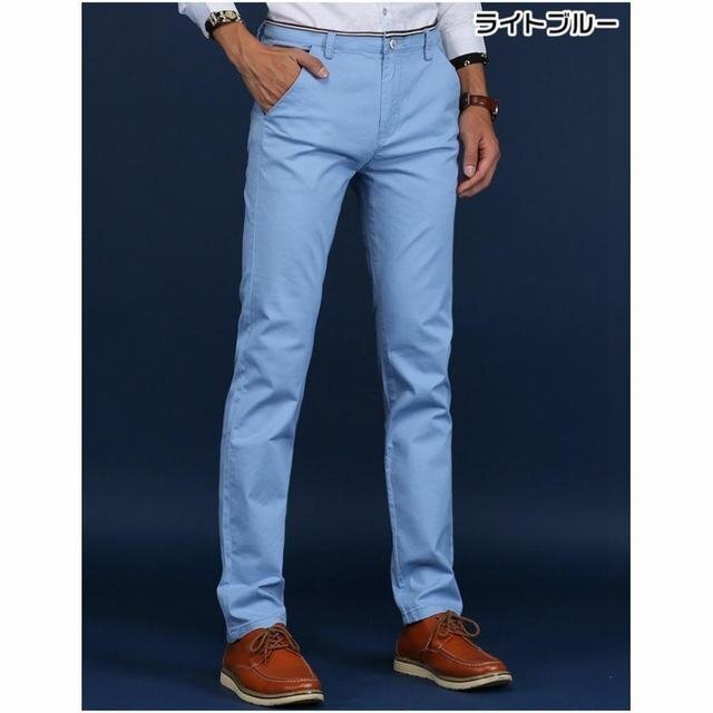 おしゃれ シンプル ロングパンツ メンズ 通学 通勤 カジュアル ビジネス かっこいい無地ライトブルー サイズ 33