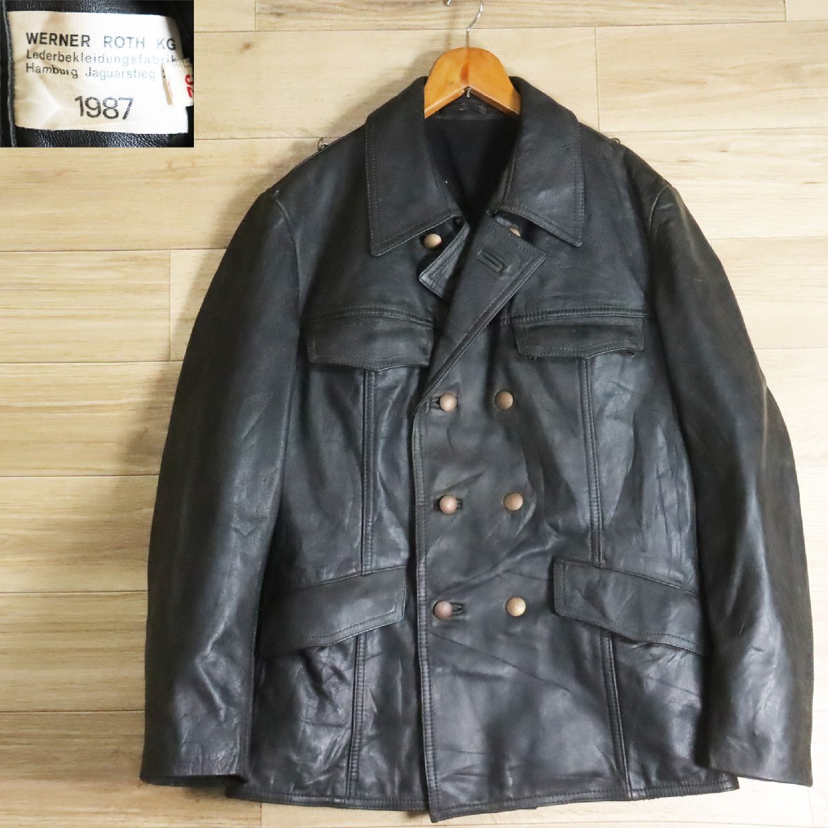 ?2K/S5.27-1 80s WERNER ROTH KG ドイツ警察 本革 ポリスマンジャケット レザージャケット ダブルブレスト レザーコート