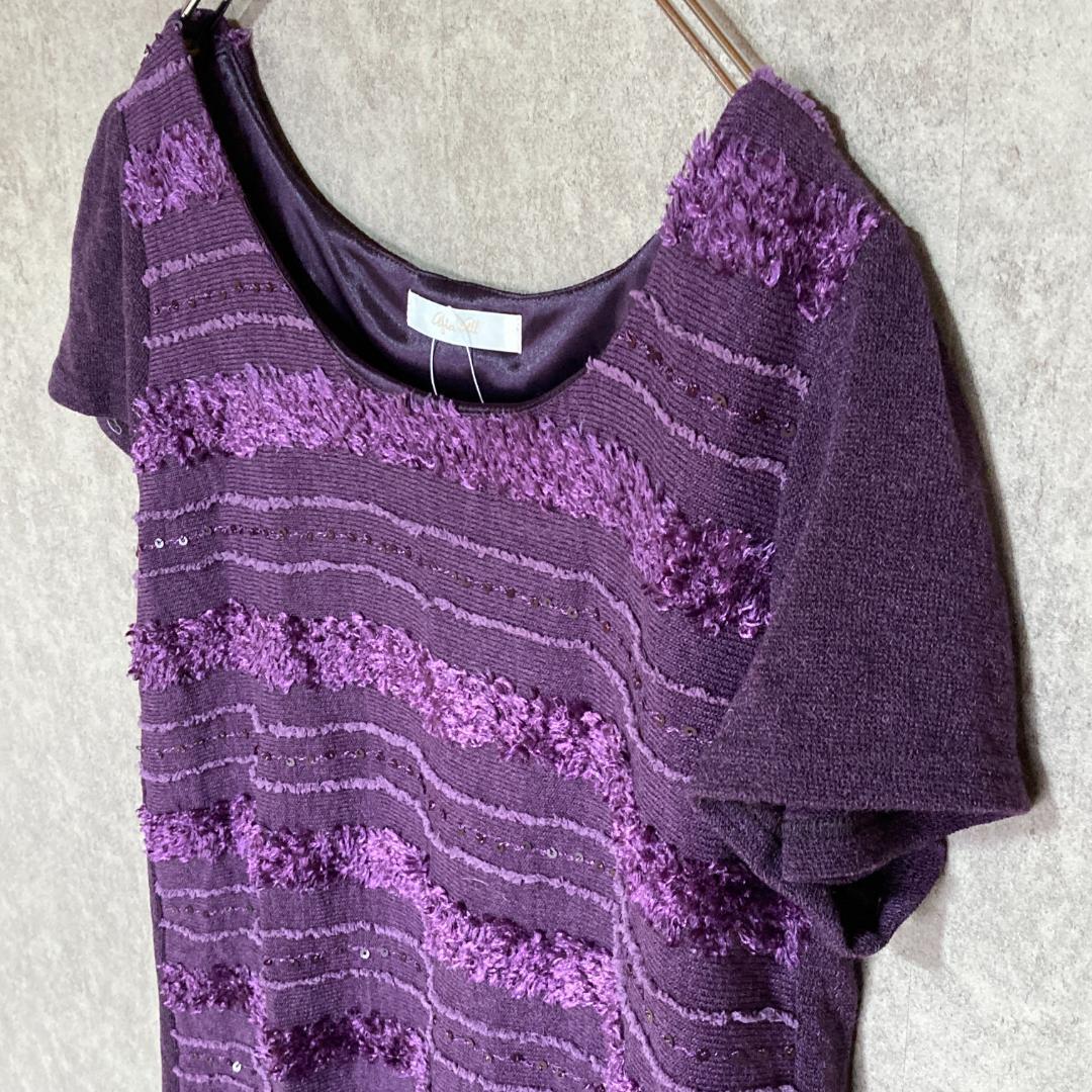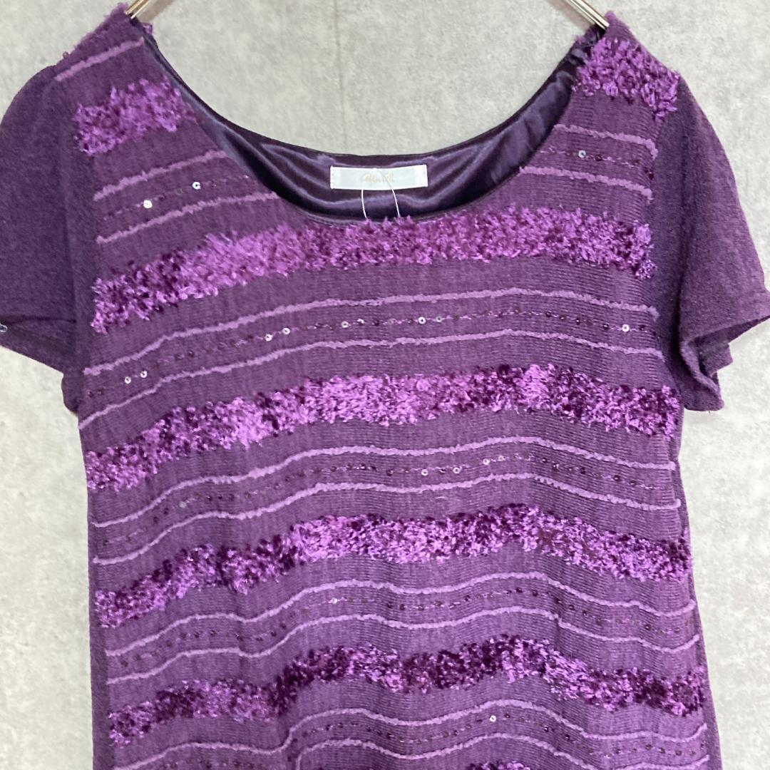 アフターオール(M)ボアスパンコールチュニック*半袖*裏地*伸縮性*ワンピース