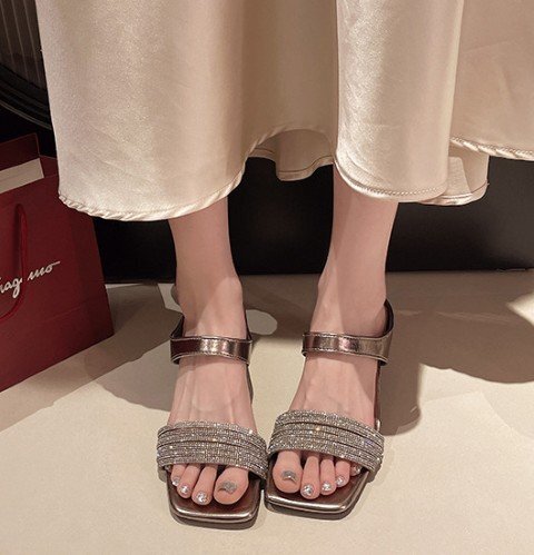 ・ 足元を華やかに彩るグリッターがゴージャスな印象を与える レディースサンダル。