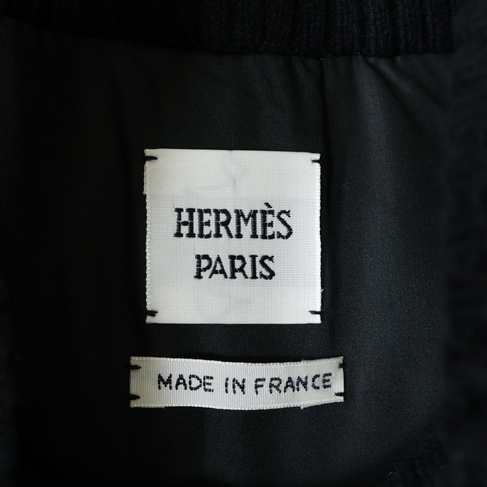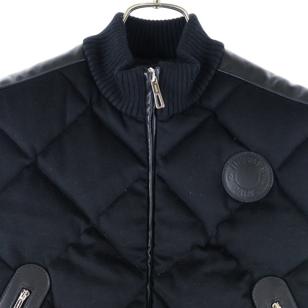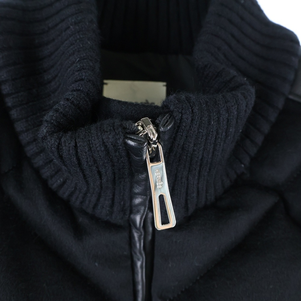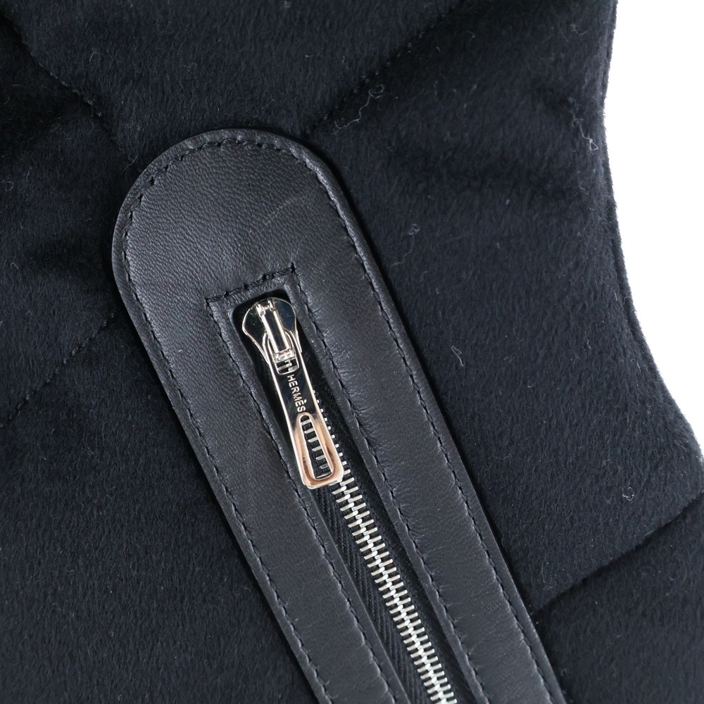 HERMES エルメス レザーセリエワッペン付き カシミヤ ショート丈 ダウンベスト レディース ブラック