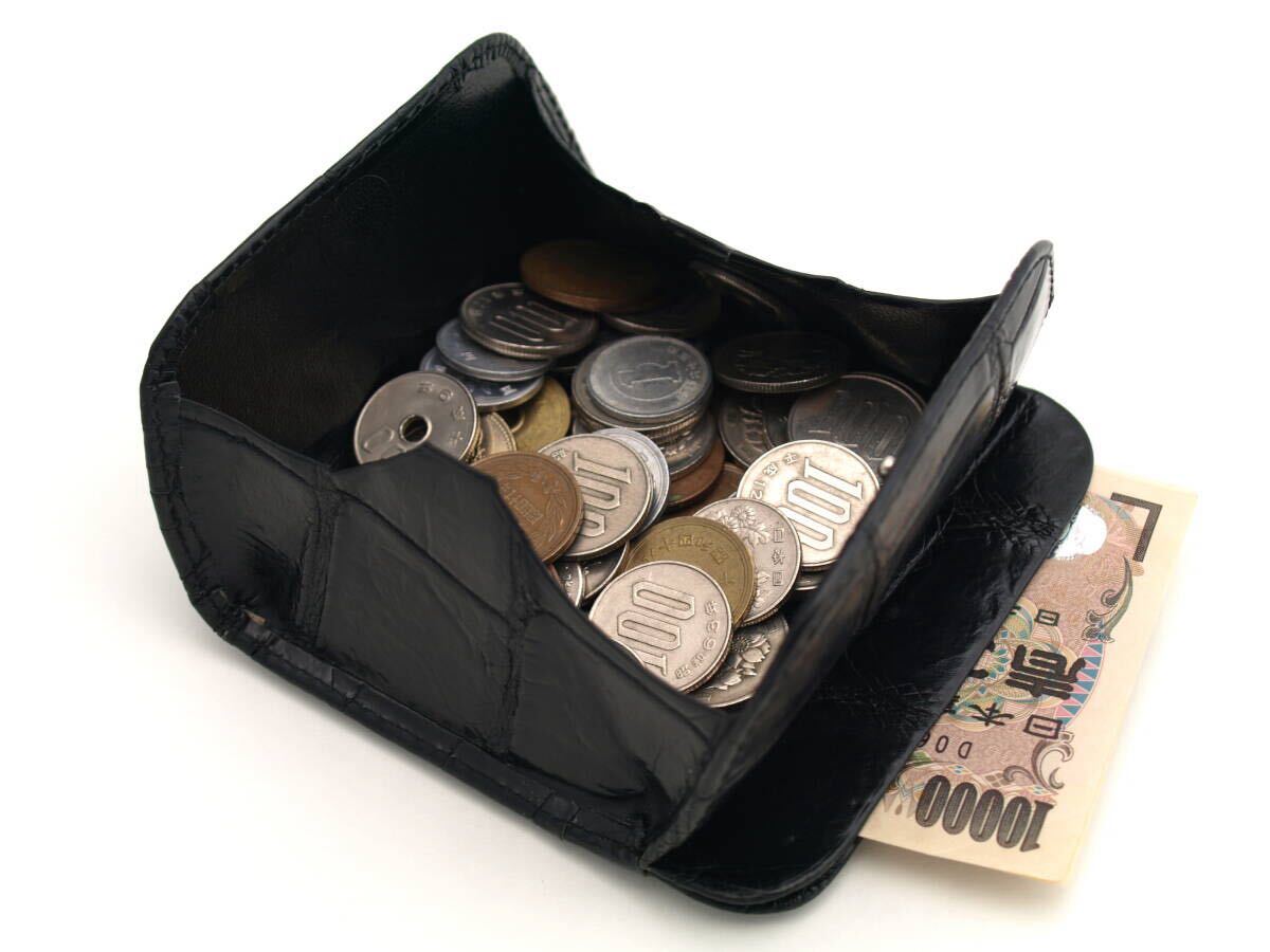 手のひらサイズなのに、ガバッと開く小銭入れ