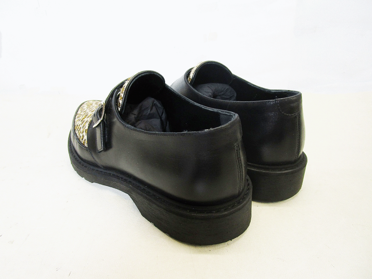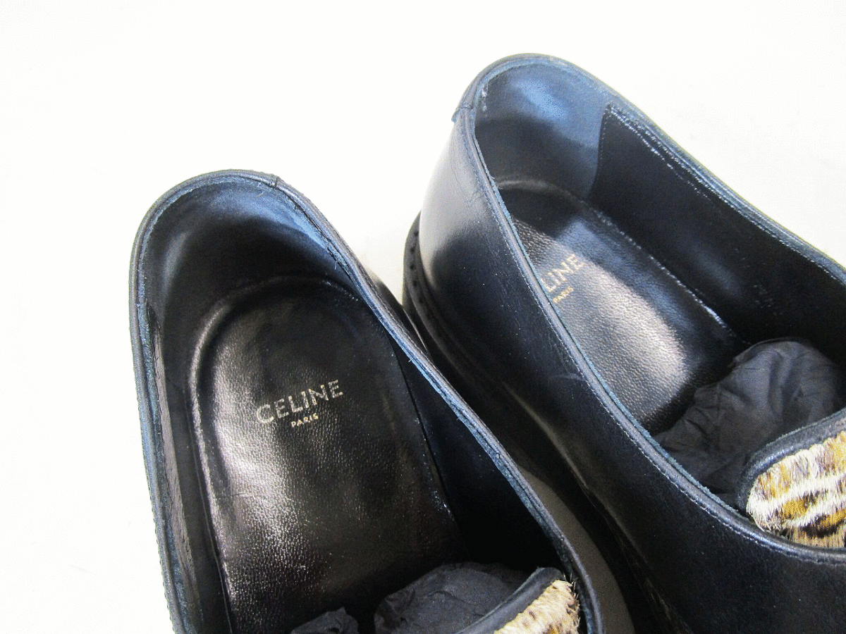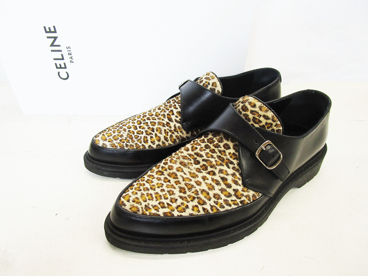 (D) CELINE HOMME セリーヌ 19AW ハラコ切替 クリーパーズ バックルシューズ 39.5 ブラック レザー レオパード